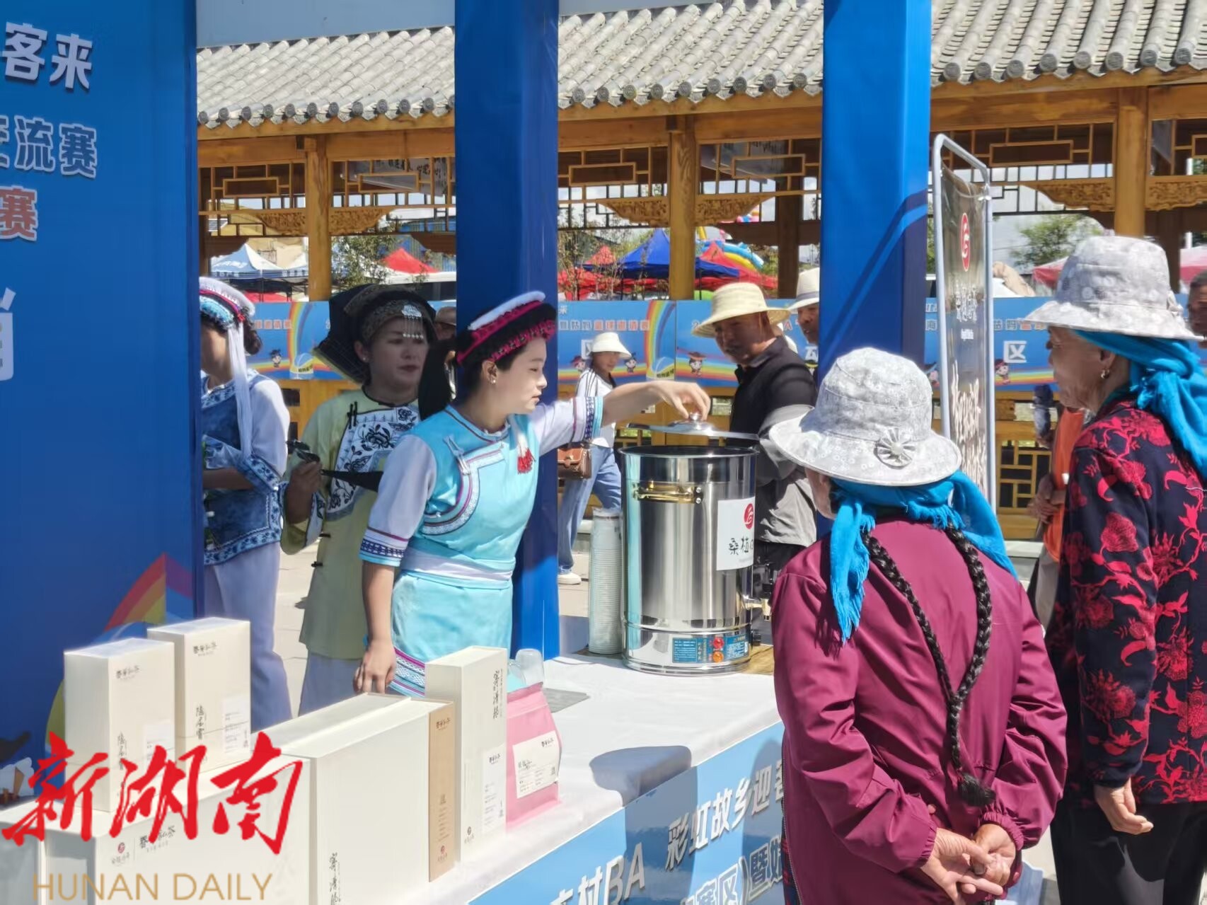 桑植的热情不止在赛场,展销台前,桑植白茶、莓茶、葛根产品、大鲵酒、魔芋干等三十多种特色农产品引来互助县乡亲驻足,一位当地土族小姑娘尝过桑植白茶后十分喜欢,帮助展位工作人员到处推销,还一个劲儿地说“长大了一定要去桑植!”这童言里,是两地人民最真挚的联结。