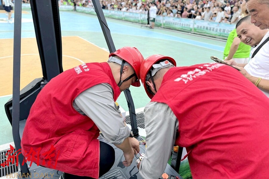 视外桃源客户端8月11日讯(通讯员: 蔡文龙 段园园 郭楠 ) 近日,桃源县“茶BA”乡村篮球赛在茶庵铺镇篮球公园开幕,国网桃源县供电公司的“红马甲”保电小分队穿梭其间,为这场乡村体育赛事筑牢电力防线。