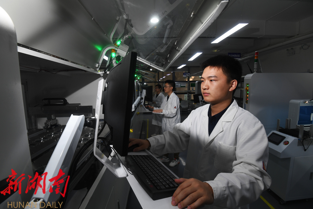 (湖南北云科技有限公司,北云X2自动组装生产线正满负荷运行。该公司从事北斗卫星导航研发十余年,自主研发出的高精度定位定向接收机产品,能在各种复杂环境下将定位精确到厘米级别,受到国内众多驾考系统集成商的欢迎。湖南日报全媒体记者田超摄)