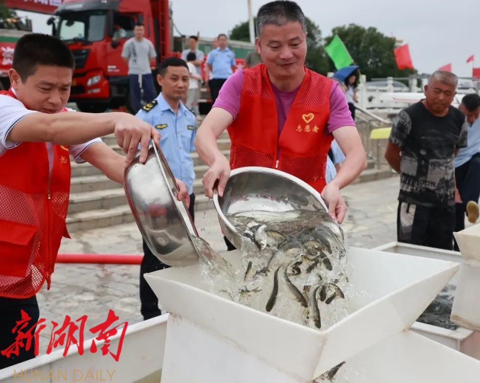 资阳融媒8月12讯(记者:袁欣)8月12日上午9时,资阳区在黄家湖码头举行增殖放流活动,106万尾优质鱼苗被分批放入黄家湖水域。