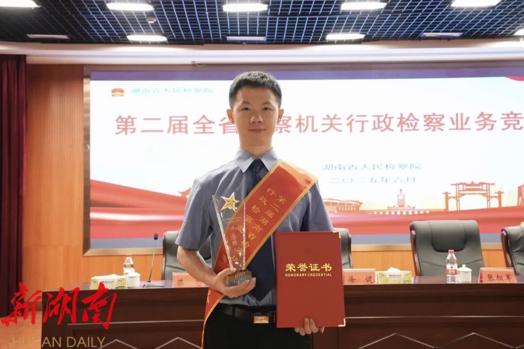 他就是李森,中共党员,现为湖南省常德市人民检察院第六检察部四级检察官助理。2025年6月,他在第二届全省检察机关行政检察业务竞赛中,勇夺全省第一的佳绩,荣获“全省检察机关行政检察业务标兵”荣誉称号。