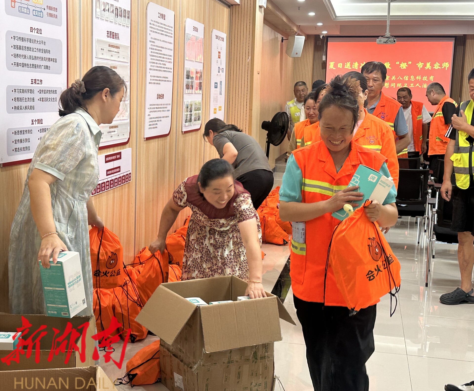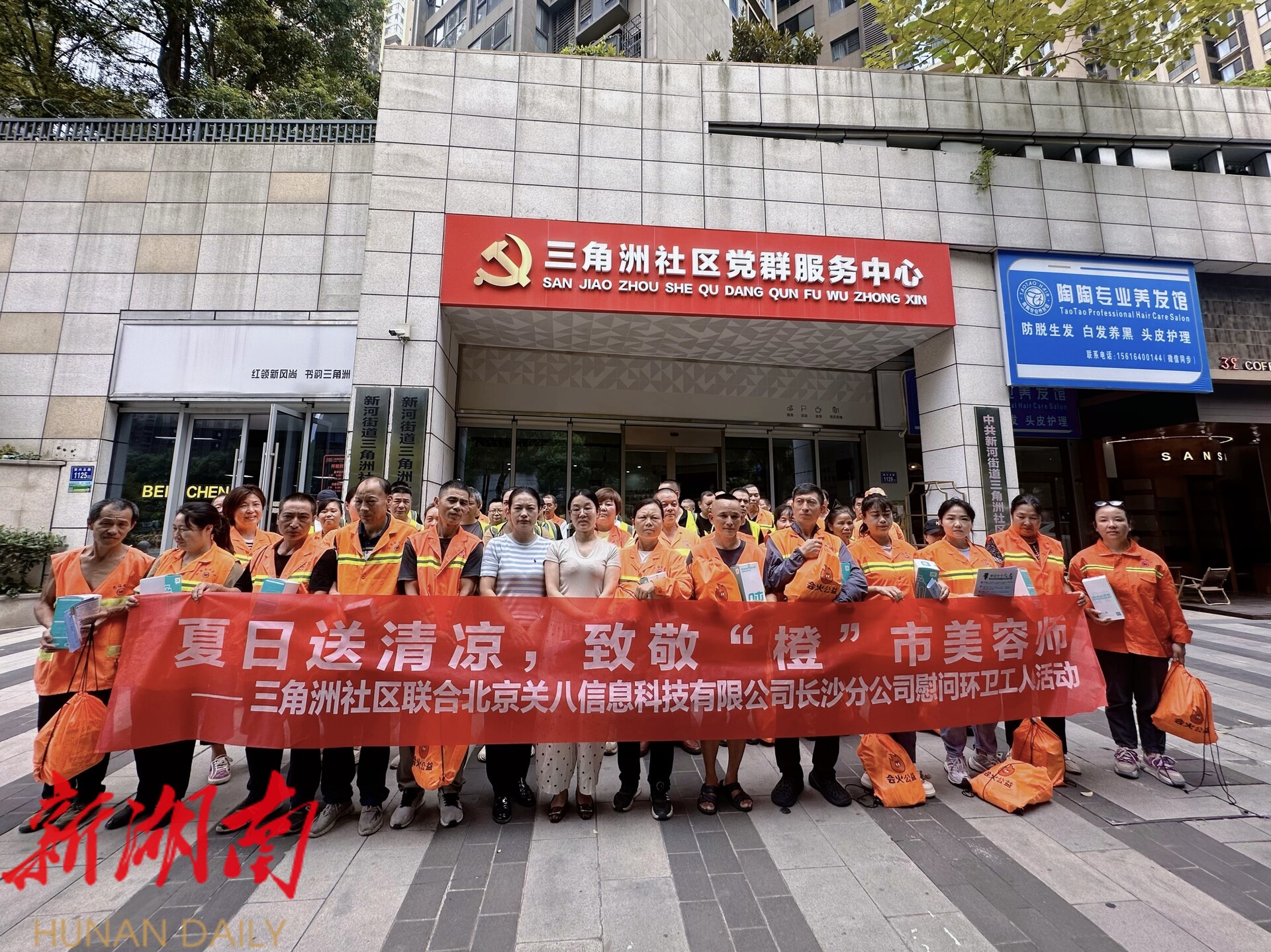 湖南日报·新湖南客户端8月13日讯(通讯员 张密)为扎实推进新业态新就业群体党建工作,8月13日,开福区新河街道三角洲社区党委充分发挥“红舟联盟”区域化党建平台作用,联合辖区多家非公企业党支部,共同开展“夏日送清凉,致敬‘橙’市美容师”主题慰问活动,向奋战在一线的环卫工人送去党组织的关怀与夏日清凉。