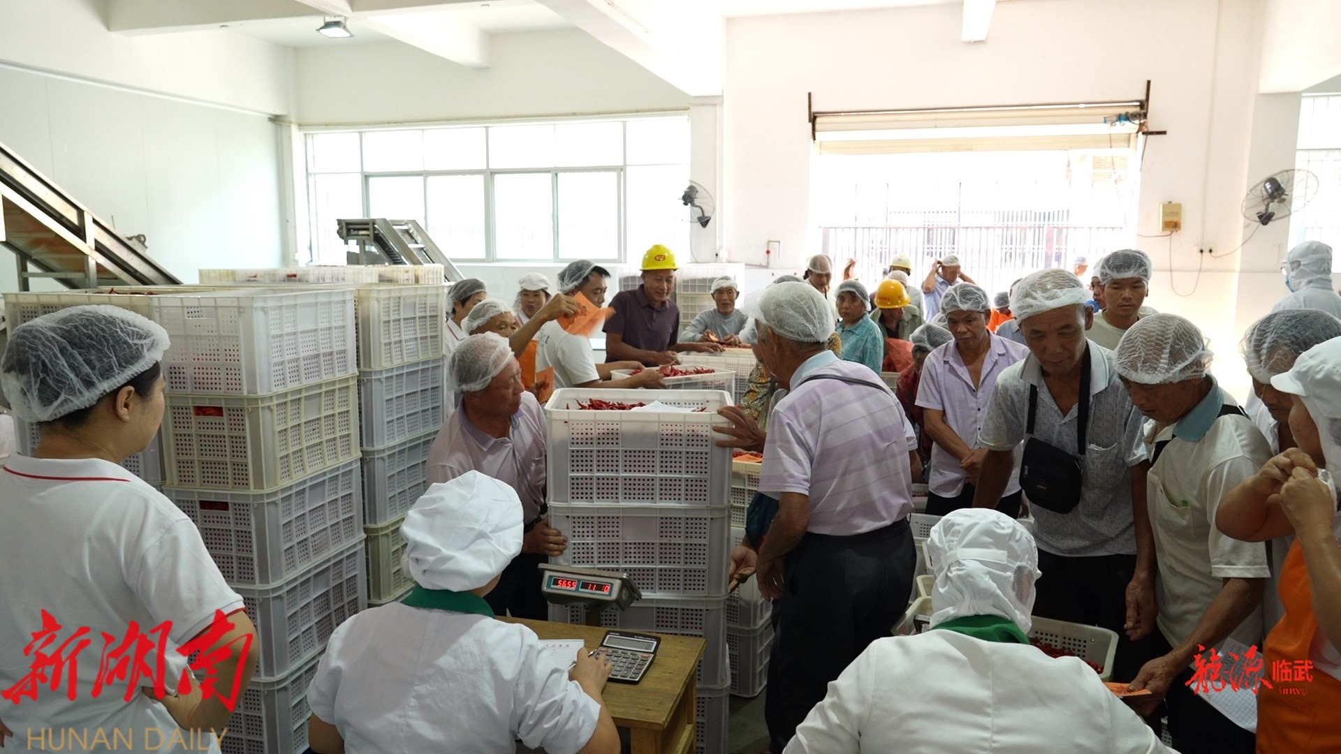 “我们从今年7月25日开始收购,首日收购了20多吨。今天是第五次收购,前四次共计收购了80多吨。”“小徐瓜瓜”自2003年成立以来,便积极探索与农户紧密合作的发展模式,长期与临武县各乡镇保持着稳定的合作关系。每年,公司都会免费向签约农户发放优质辣椒种子,并组织专业技术人员深入田间地头,提供从育苗、移栽到病虫害防治的全过程技术服务,确保辣椒品质优良、产量稳定。这种模式不仅有效保障了企业优质原料的稳定供应,更成为带动当地农民增收致富的重要途径。