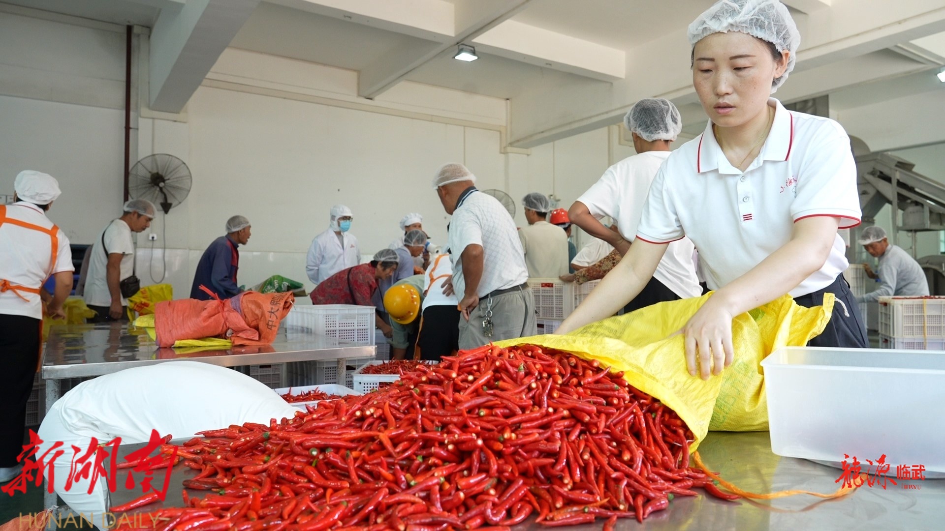 龙源临武客户端8月13日讯(记者 雷婉婷 黄玲艳)近年来,临武县创新农业发展模式,大力推行订单农业。小徐瓜瓜食品有限公司与农户签订保底收购协议,不仅保障了农产品销路,更带动了当地农民增收致富。眼下正值辣椒丰收季,农户们满载“致富椒”有序交货,红火的产业铺就了乡村振兴的“火红”致富路。