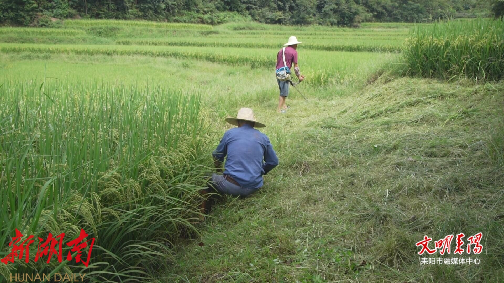 在沙明洞、陈家岭等地,除草机器在田间轰鸣作业,工人们手持镰刀穿梭稻行,清除稗草、杂草并集中堆放在田埂晾晒;沟渠旁,管护人员挥动锄头清理淤泥和杂物,确保水流通畅、雨来能排。部分低洼田块提前开沟排涝,保持浅湿管理,降低病虫害风险,并为机械收割创造坚实田面。这些管护措施不仅减少病虫害隐患,还能促进稻谷充分灌浆、减少倒伏,进一步提升米质和产量。