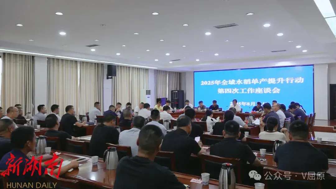 湖南日报·新湖南客户端8月14日讯(通讯员:姜瑶)8月12日,屈原管理区召开2025年全域水稻单产提升行动第四次工作座谈会,旨在总结回顾早稻生产和晚稻育秧工作,部署晚稻生产、秋冬种和秸秆综合利用等工作,持续高质量推进全域水稻单产提升行动,助力岳阳国家农高区建设。湖南省农科院党委委员、副院长,湖南杂交水稻研究中心党委书记许靖波;湖南省畜牧兽医研究所所长张佰忠;屈原管理区党委书记向科军;湖南杂交水稻研究中心、湖南省畜牧兽医研究所、湖南省耕地与农业环境生态研究所专家团队;区党委委员、管委会常务副主任湛江;区直相关部门、乡镇、农业村(社区)主要或相关负责人,农业经营主体及涉农企业代表等参加。