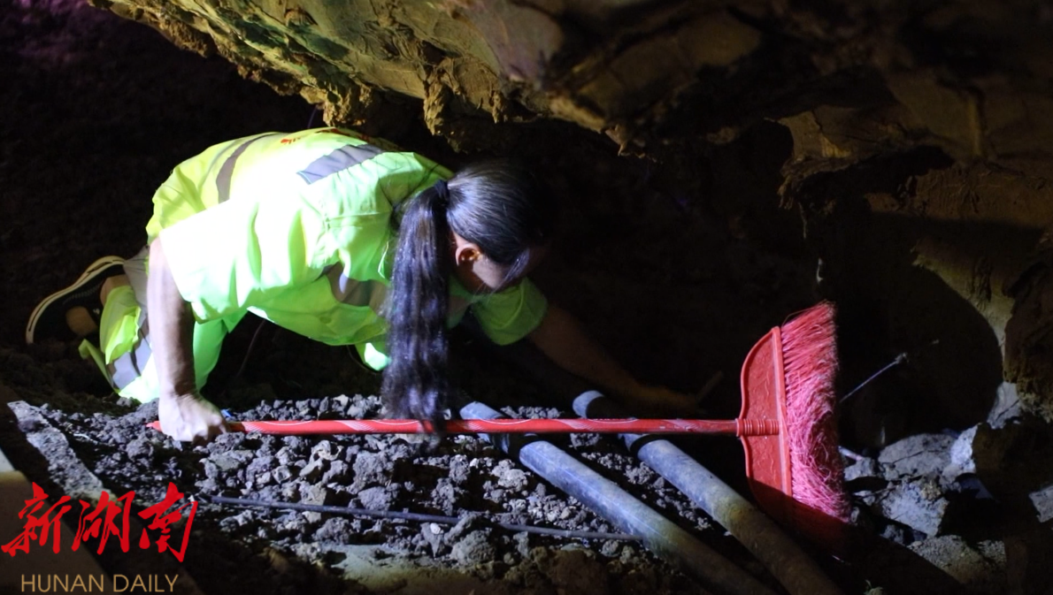 紫霞岩溶洞内地形复杂,洞道时而宽阔,能容数人并行,时而又狭窄得仅能侧身通过,蜿蜒曲折的石阶和地下河也为清理工作带来不小的困难。面对复杂的环境,景区推行精细化、网格化清洁流程,定时巡查、高频次清扫,确保垃圾即产即清。5人保洁小组各显神通,在宽阔区域,他们手持长柄扫帚,将地上的灰尘、小颗粒垃圾扫成一堆,再用簸箕仔细收集起来;到了狭窄地段,他们改用夹子,小心翼翼地夹取散落在角落的垃圾;遇到钟乳石间隙中的垃圾,他们弯腰侧身,小心翼翼地将垃圾拾起。为避免垃圾滞留影响洞内微环境,他们将所有收集的垃圾严格分类,并依规运出溶洞进行环保处理,确保溶洞空气与水体不受污染。
