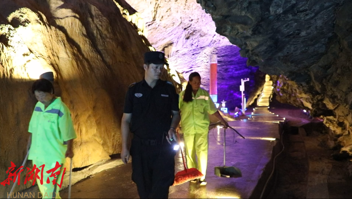 宁远县九疑山旅游开发有限公司副总经理石成舟说:“我们组建环境治理专班,每天至少三次对溶洞内的卫生进行检查,不间断进行卫生清理,确保不留死角。同时,把环保标准融入日常,固化成长效管理机制,让‘零污染’理念贯穿游客游览、设施维护、应急处置等各个环节,守护溶洞自然生态。”