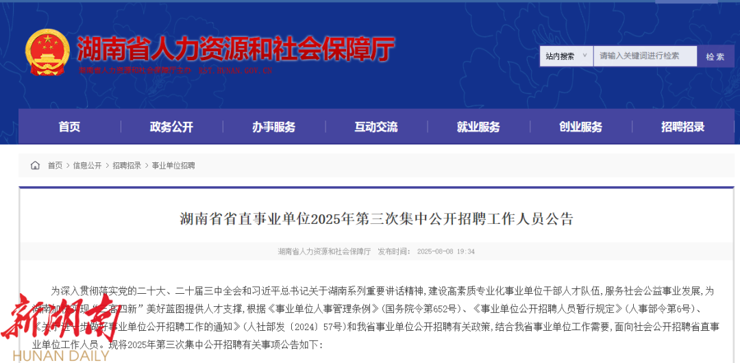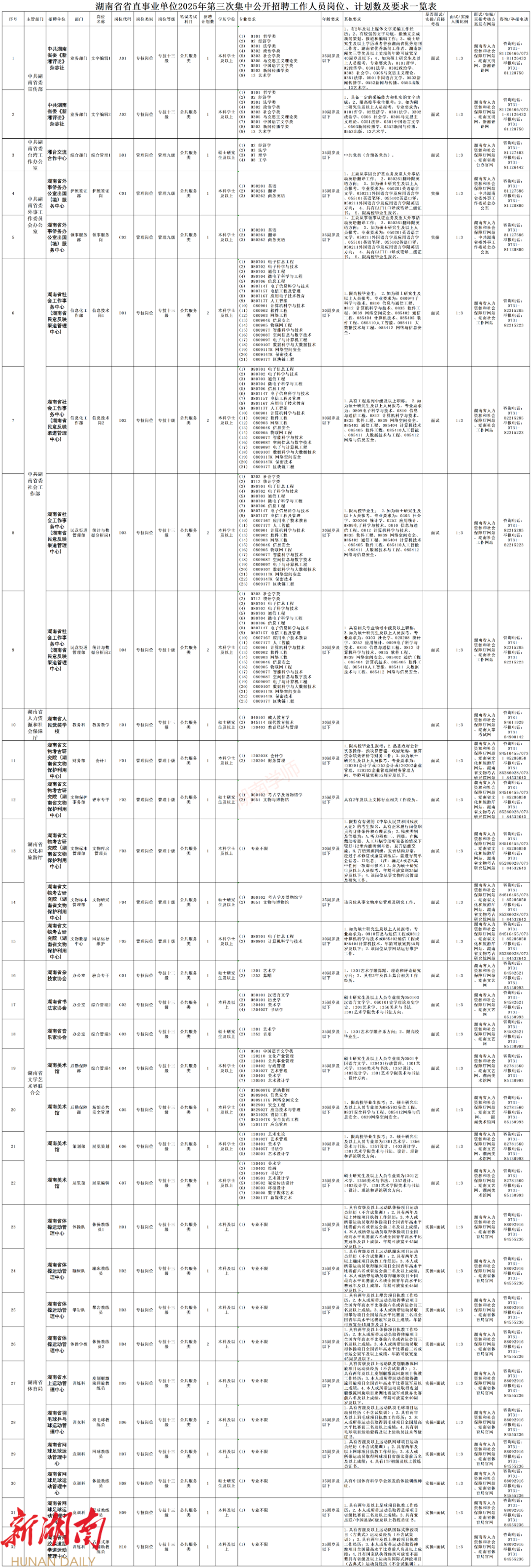 湖南省省直事业单位 2025年第三次集中公开招聘共发布招聘岗位140个;计划招聘175名工作人员,其中管理岗位计划招聘26名,专业技术岗位计划招聘149名。