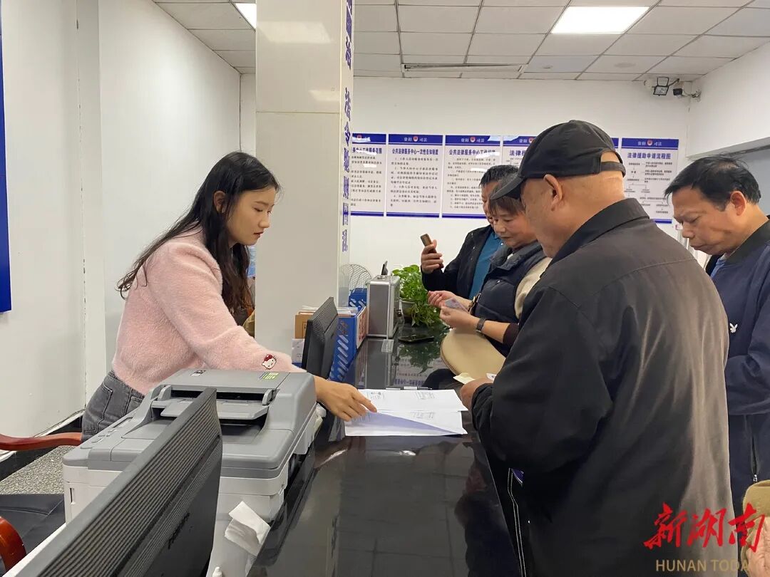 2024年10月,资阳区法律援助中心主任李思(左一)在公共法律服务大厅接待与资阳区某园林公司发生劳动争议的群众代表。
