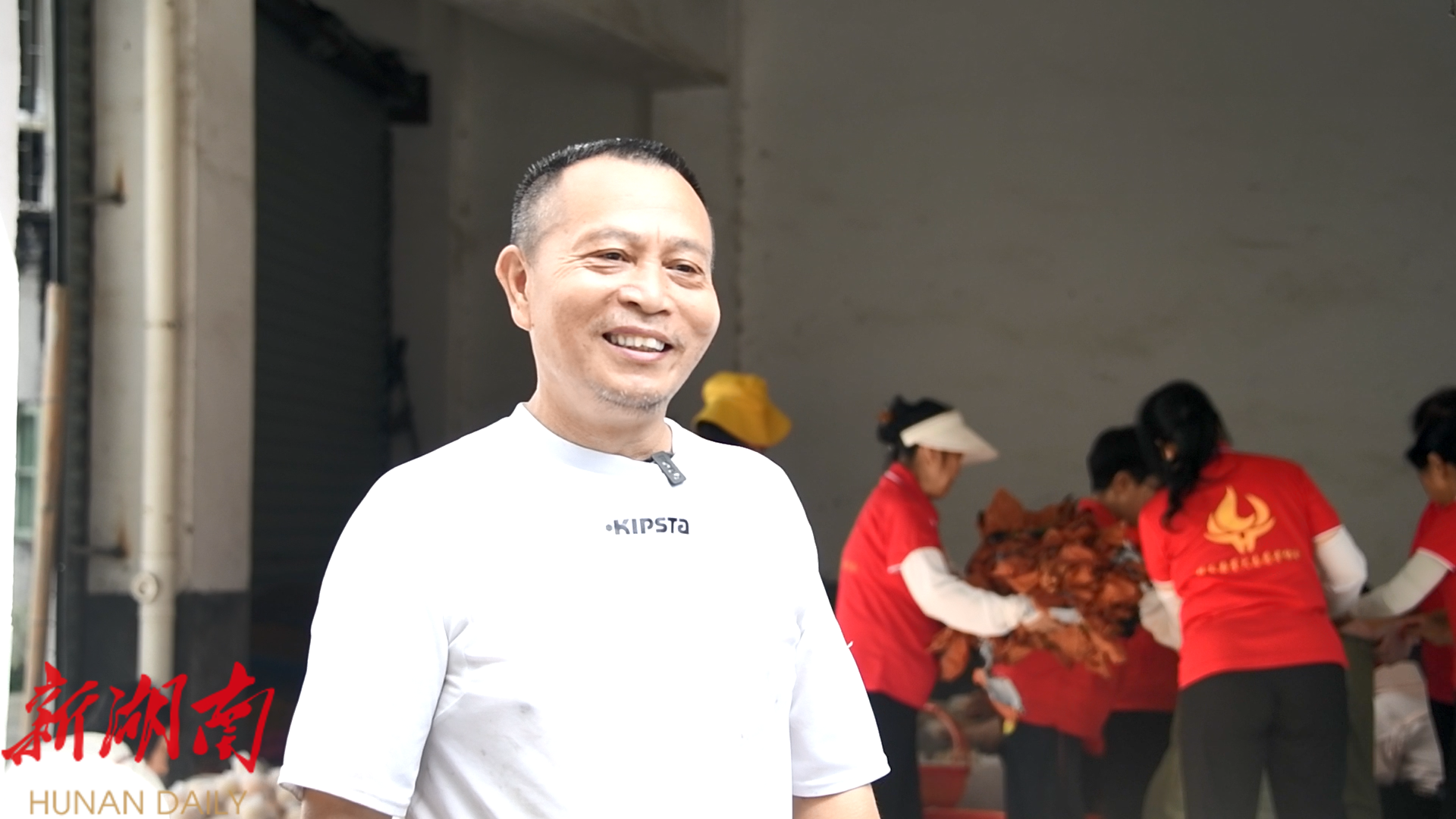 果农 黄金强:今年黄桃大丰收,(黄桃)太多了,人手根本忙不过来,还好星火志愿者协会的大家都来帮忙,感谢他们。