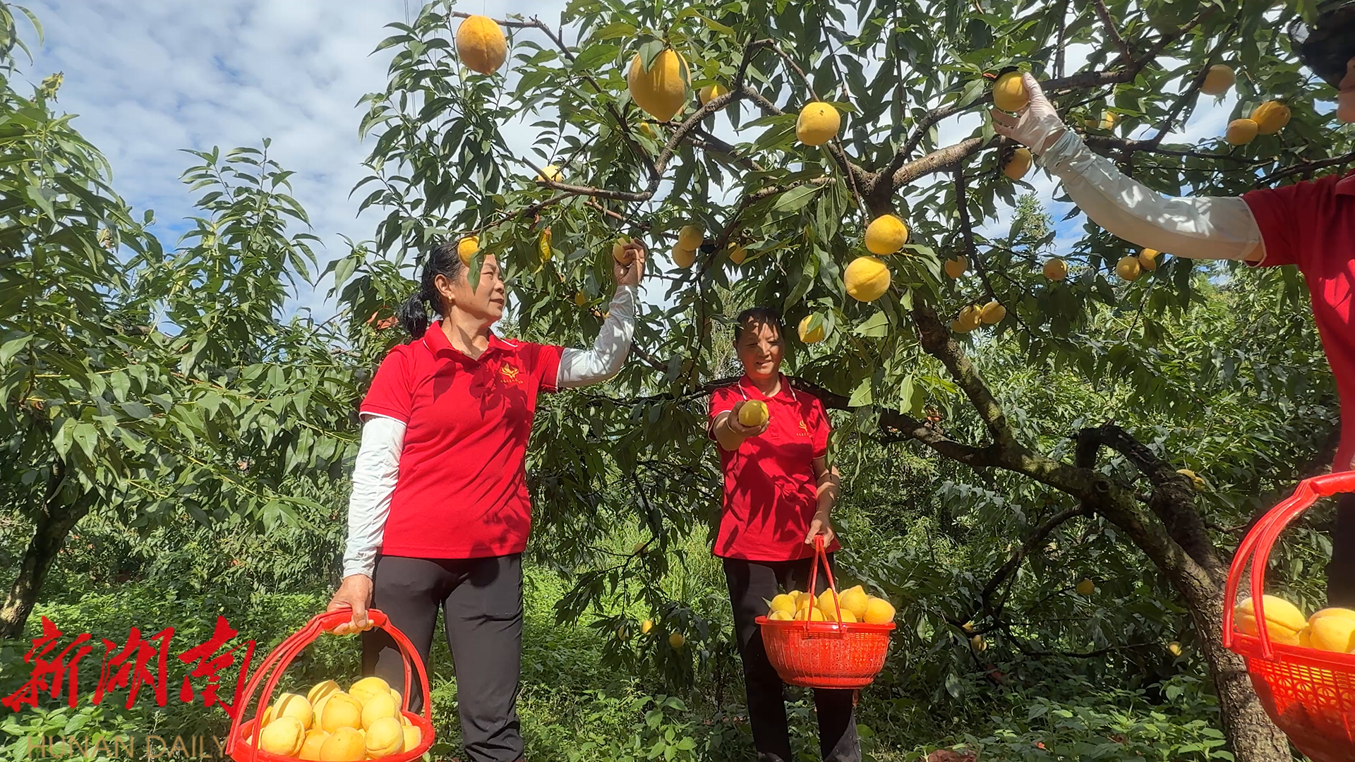 当天一大早,助农小分队赶到沤江镇光明村的果园。在果农的指导下掌握采摘技巧后,大家迅速投入工作。桃林间,“志愿红”身影忙碌穿梭,不一会采摘动作便已娴熟,一颗颗黄桃被完好无损地摘下。接下来,志愿者们又化身“分拣员”“包装工”,与果农默契配合,完成分拣、套袋、装箱、装车等工序,形成一条高效运转的“助农流水线”。经过一上午的协作,千余斤黄桃整齐装箱,迅速发往市场。