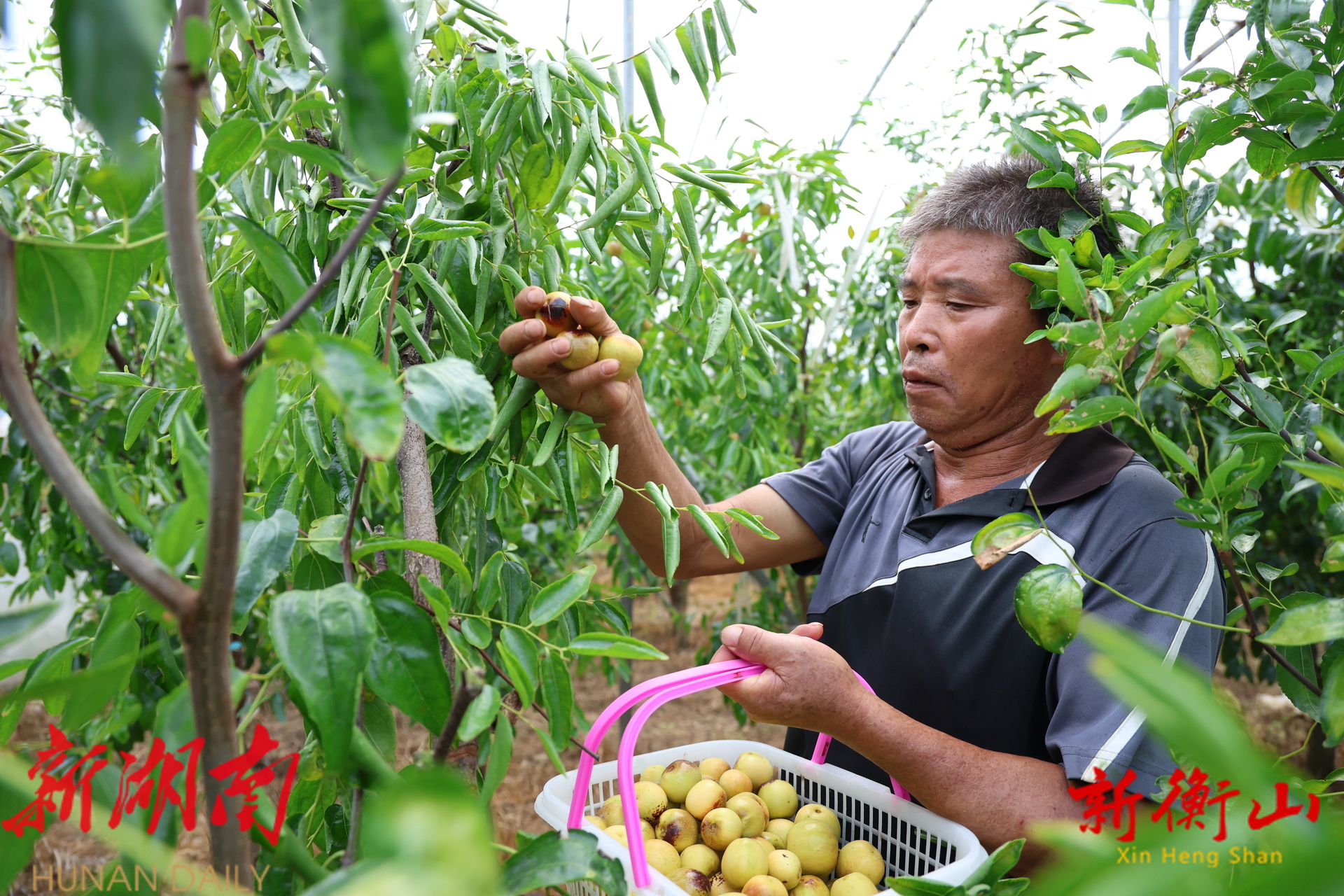 新衡山客户端8月14日讯(记者:廖晶 文雅婷)近日,衡山县永和乡沙头村冬枣种植基地的冬枣“抢鲜”上市了。枣农们忙着采摘成熟的冬枣,喜迎丰收。