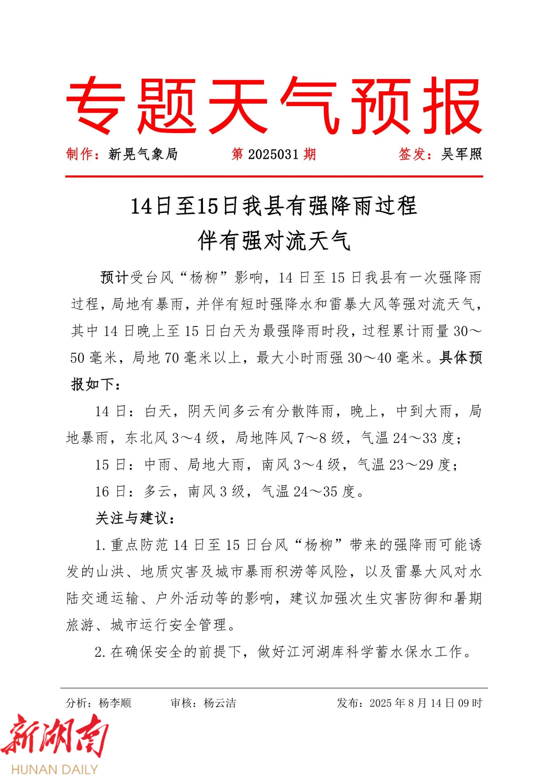 专题天气预报 | 14日至15日我县有强降雨过程 伴有强对流天气