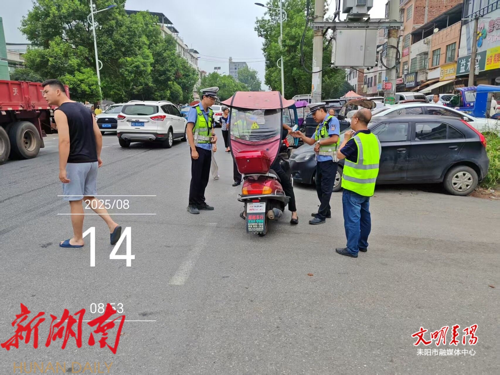 耒阳融媒8月14日讯(记者 江维东) 8月14日,市交警大队小水中队联合小水镇工作人员,在107国道小水镇路段开展摩托车、电动车交通违法行为集中整治行动,全力守护群众出行安全。