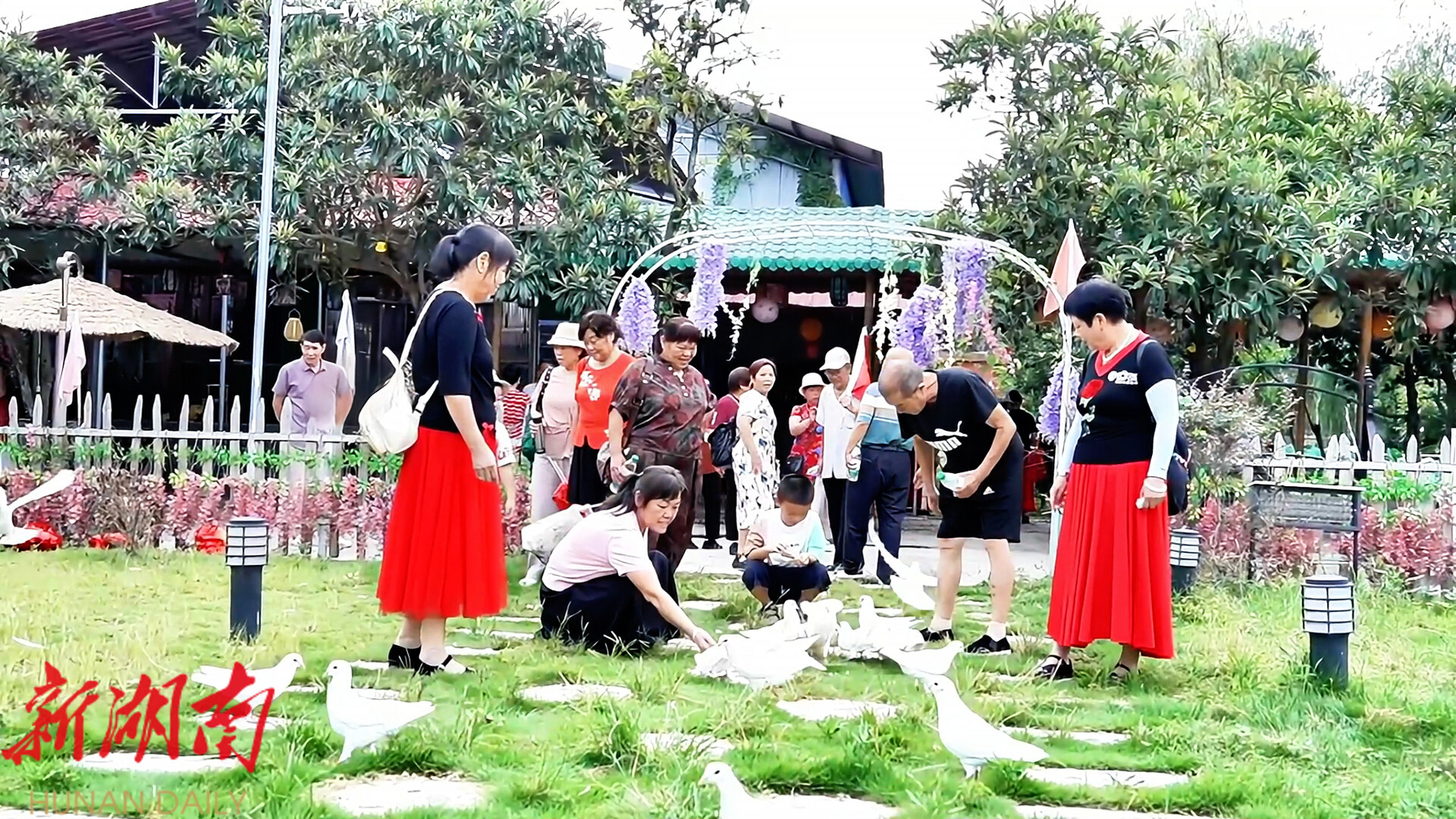 8月14日,记者走进望龙山庄度假区看到,游客们正手拉手跳起欢快的舞蹈,享受着乡村游的乐趣。为抢抓暑期旅游黄金期,度假区还针对中老年、家庭、学生等不同出游群体,推出亲子活动、鸽子互动喂食、丛林魔网等特色项目,游客们还可在清凉的林间搭建帐篷,参与亲子树攀、趣味互动等游戏,享受远离城市喧嚣的悠闲时光。