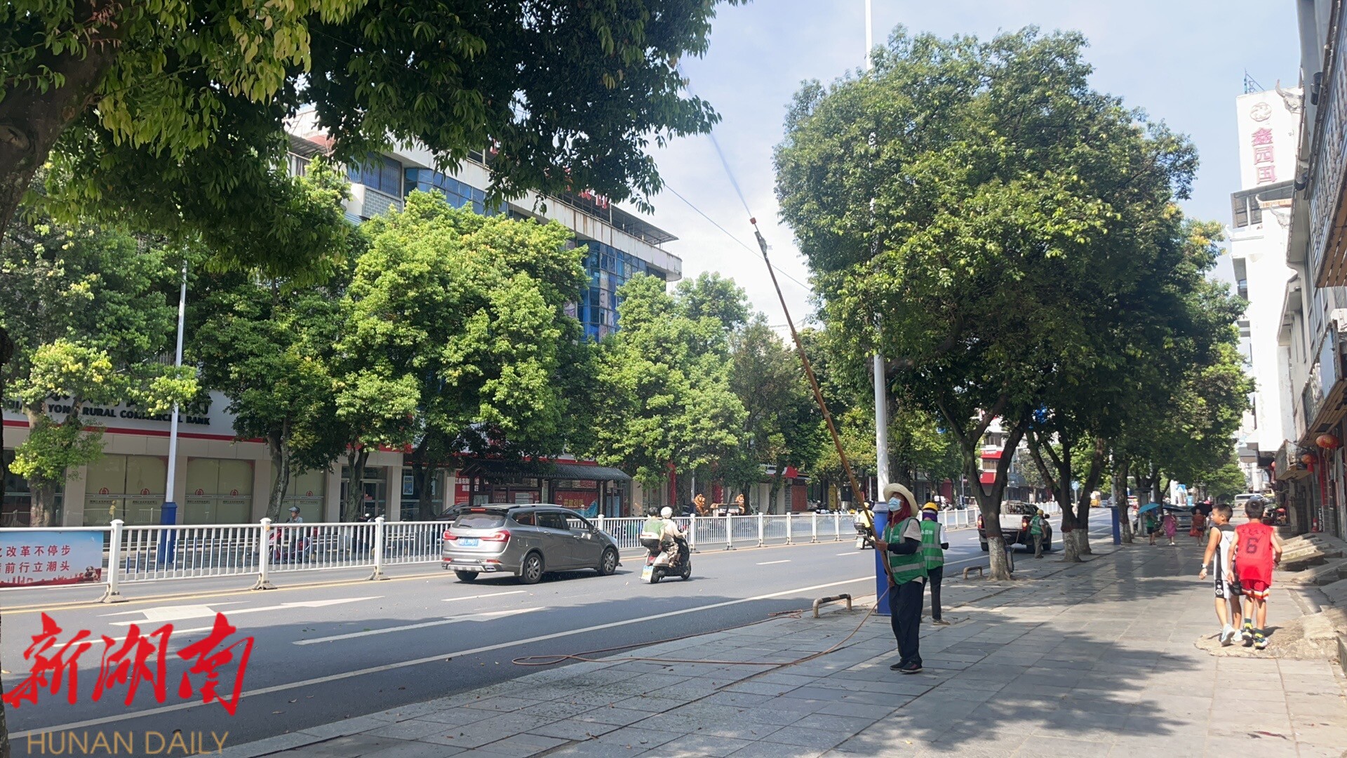 江永融媒8月15日讯(记者 蒋军) 为切实巩固城区绿化成果,保障行道树健康生长,有效防控病虫害滋生蔓延,我县于近期科学部署、高效行动,对城区所有主次干道两侧的行道树展开了系统性、全覆盖的集中药物消杀作业,为城市生态筑牢“健康屏障”。