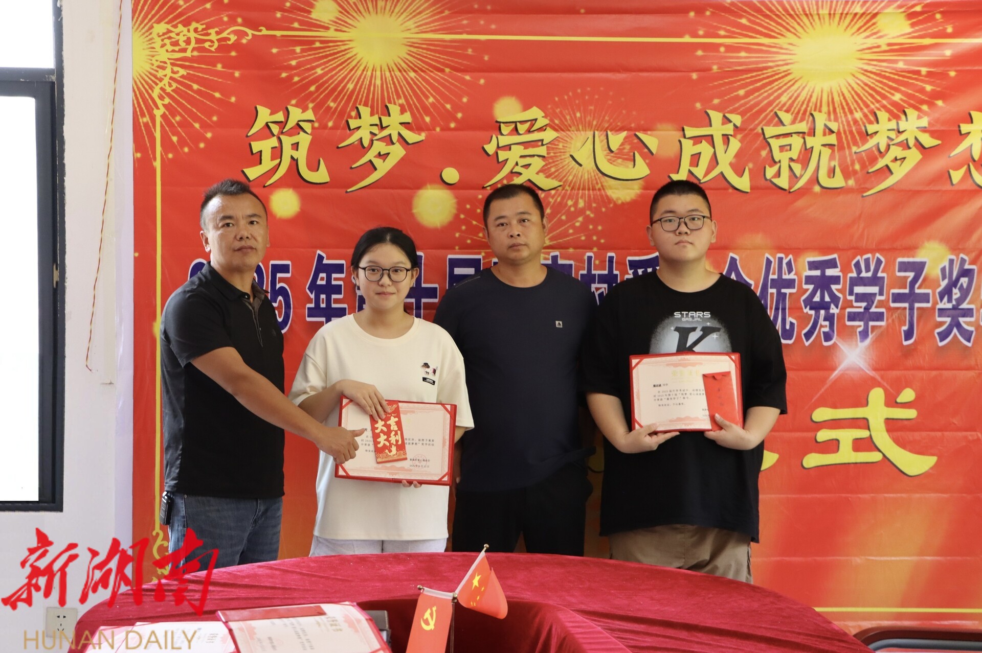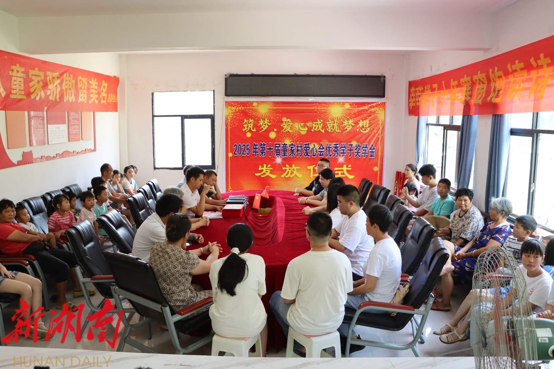 新新邵客户端8月13日讯 (记者 杨明航 刘丈国 肖萍)8月12日,新邵县太芝庙镇童家村热闹非凡,以“筑梦爱心成就梦想”为主题的童家村第十届爱心会优秀学子奖学金发放仪式在此举行,为村里的优秀学子们送去沉甸甸的鼓励与闪闪发光的希望。