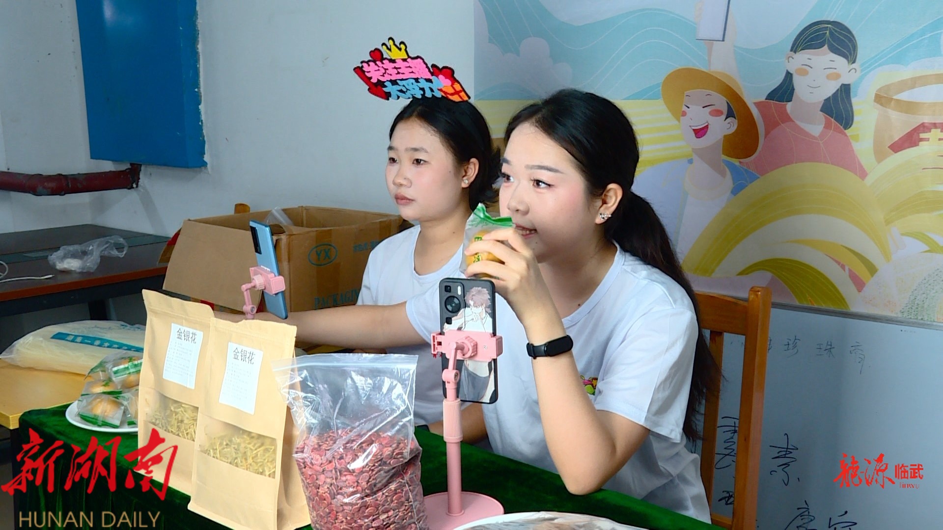 在楚才职业技能培训学校的比赛现场,6支参赛团队正在各自的直播间里紧张忙碌。大家分工明确,主播热情推介、助播实时互动、场控精准调度,将金银花、罗汉果等临武特色农产品的优势娓娓道来。新颖的直播形式、专业的带货话术,充分展现了当代大学生的创新思维和实践能力。