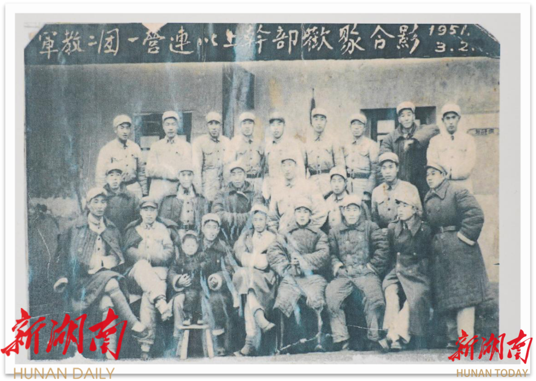 1951年3月2日,军教二团一营连以上干部合影,最右侧站姿深色衣服为张庆功