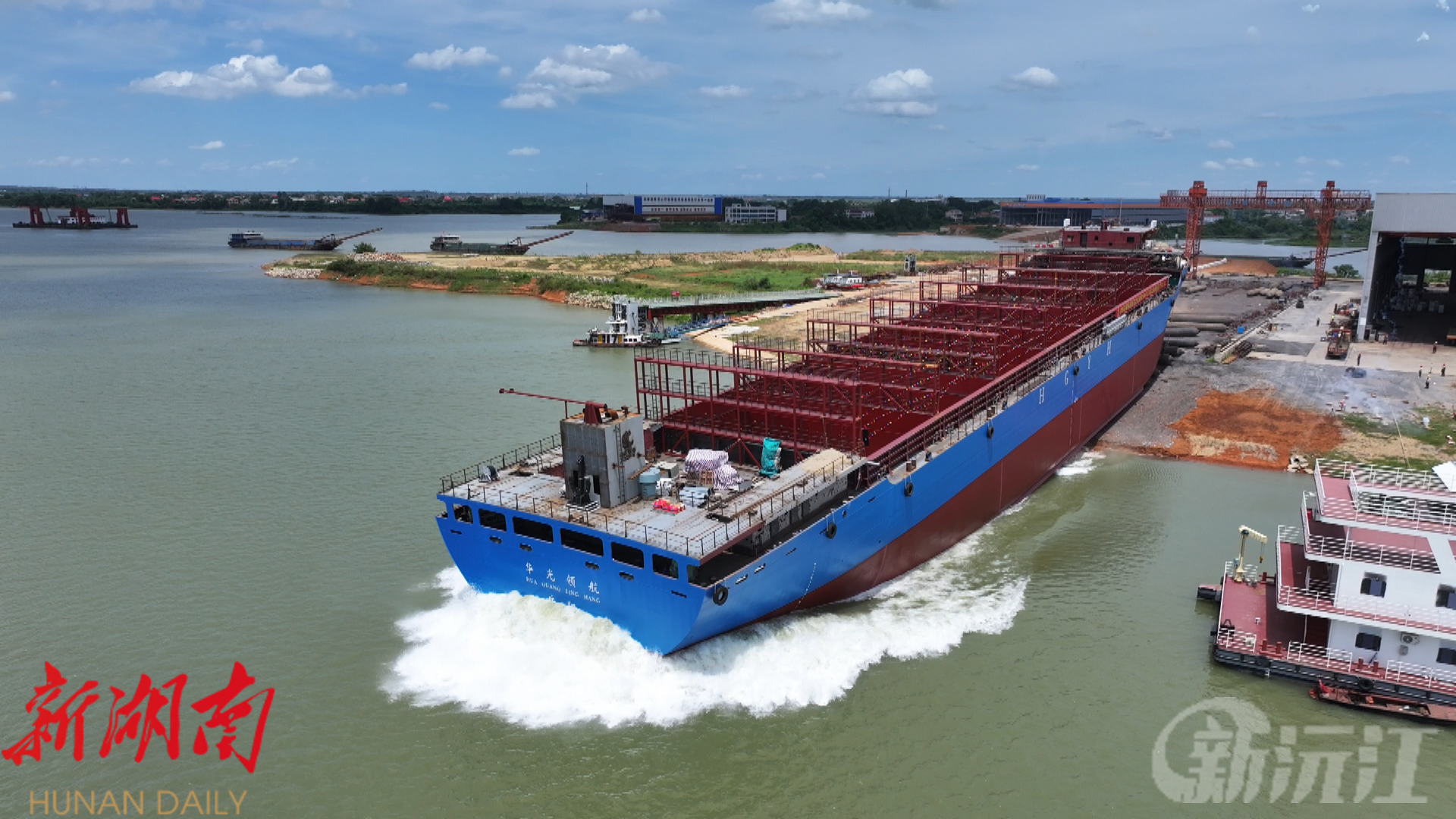 新沅江客户端8月15日讯 (记者 钟祖彪 张劲杨)8月15日,由湖南金航船舶制造有限公司承建的长江内河最大集装箱船——华光领航号在沅江市南洞庭湖行河下水。
