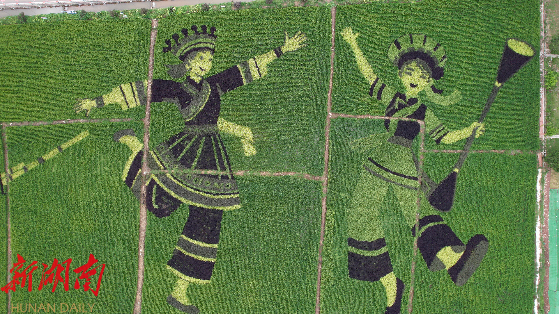 湖南日报·新湖南客户端8月15日讯(通讯员 钟彬豪)8月14日,在桑植县瑞塔铺镇、空壳树乡,一幅以大地为纸、水稻为墨的巨型彩色稻田艺术画迎来最佳观赏期,千亩彩色稻田绘就了一幅生动的田园画卷。
