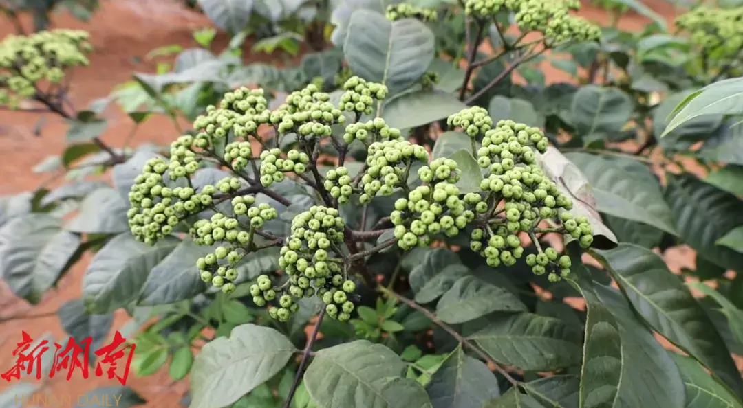 蒋家嘴镇、百禄桥镇地处西洞庭湖畔,丘岗地资源丰富,生态优势明显,适宜发展大健康产业。2023年,发祥牧业有限公司经多方考察了解到吴茱萸在临床上应用广泛,市场需求较大,便在蒋家嘴镇、百禄桥镇的5个村流转土地1092亩,发展吴茱萸中药材种植,同时采取“公司+合作社+农户”的经营形式,带动农户种植。经过精心养护管理,吴茱萸提前迎来收获期。