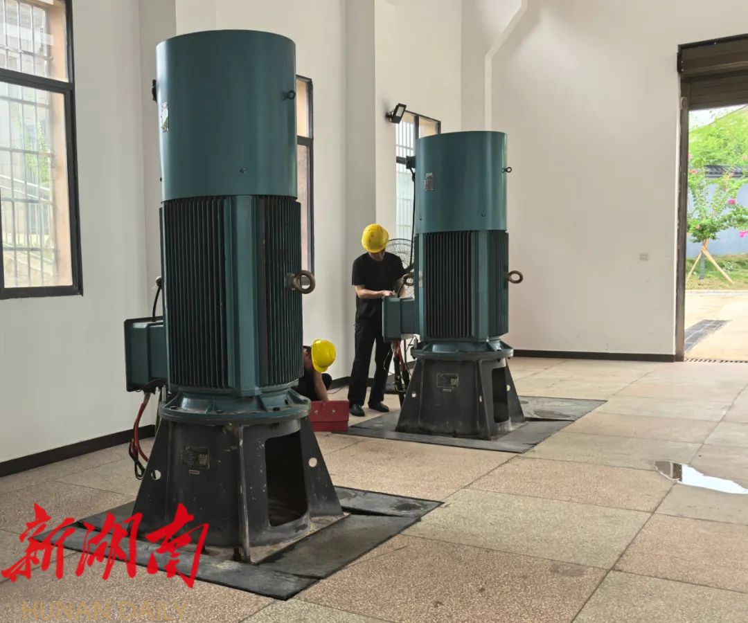 资阳融媒8月17日讯(通讯员:谭 道 吴卓敏)8月15日,在资阳区沙头镇余家咀泵站,水利技术人员正在对机埠设备进行检修维护。在“七下八上 ”防汛抗旱关键期,资阳区水利局采取多项举措,确保安全度汛和抗旱保供工作有序开展。