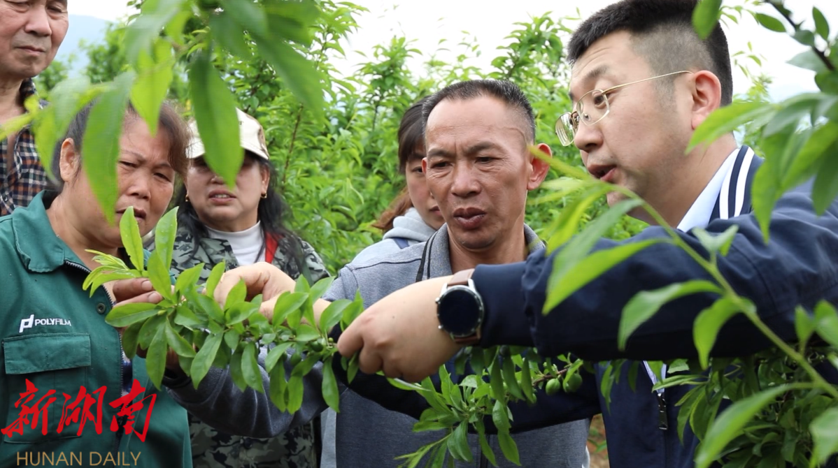 湖南省农业科学院园艺研究所的科技特派员来了。他们从土壤检测、精准施肥到疏花疏果、枝条修剪,推动奈李产业“品质革命”。疏果后,奈李单果从过去约50克增至平均100克,最大达200克,优质果比例大幅提升,最高卖到29.8元一斤。