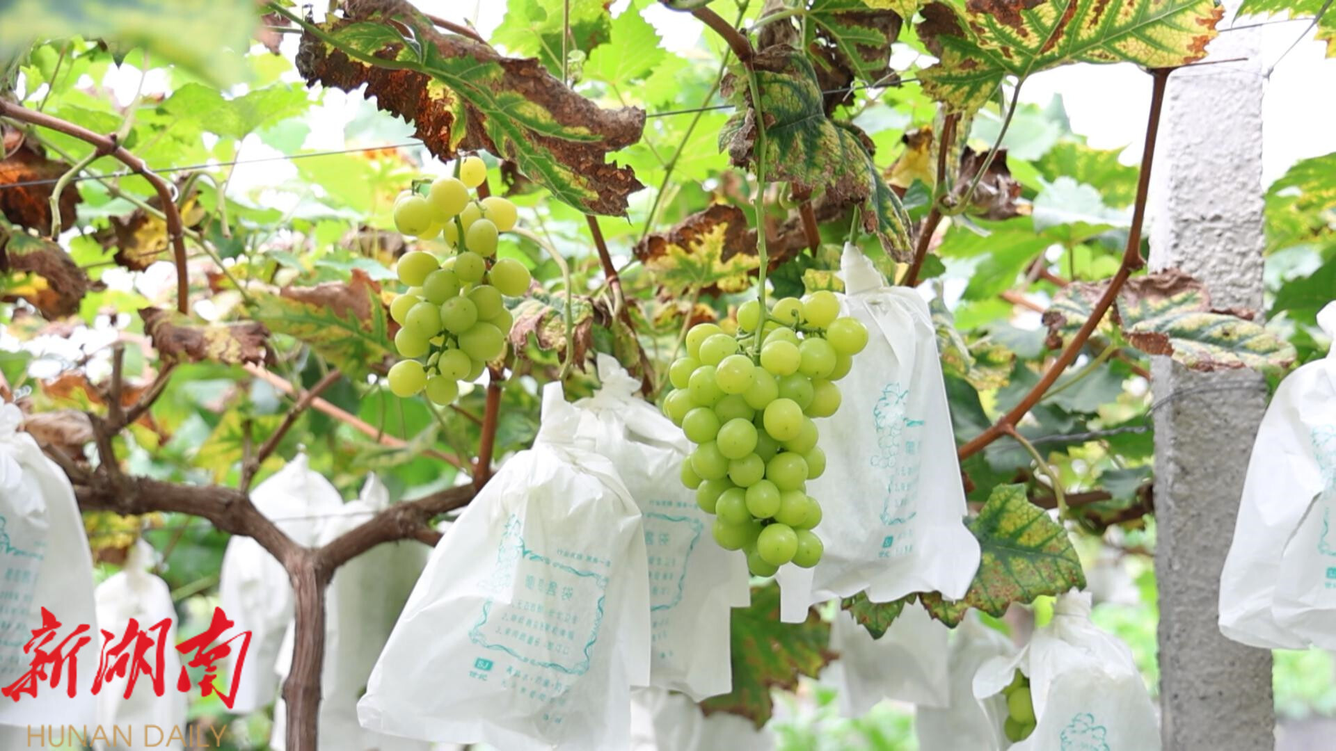 铎山镇眉山村党总支书记谢寄生说:“我们村里面从原来的50亩,发展到现在的1650亩,中间也出现过瓶颈,就是缺乏技术,葡萄烂了,所以做不下去了。我们村里面就聘请了湖南农大的教授,每年到我们这里来上两次课,给老百姓进行培训,通过培训之后,现在葡萄越做越好,加上政府给我们大力的支持,改善了避雨栽培,打了避雨棚,下面搞了滴灌,葡萄品种越来越好,深受广大消费者的青睐。”