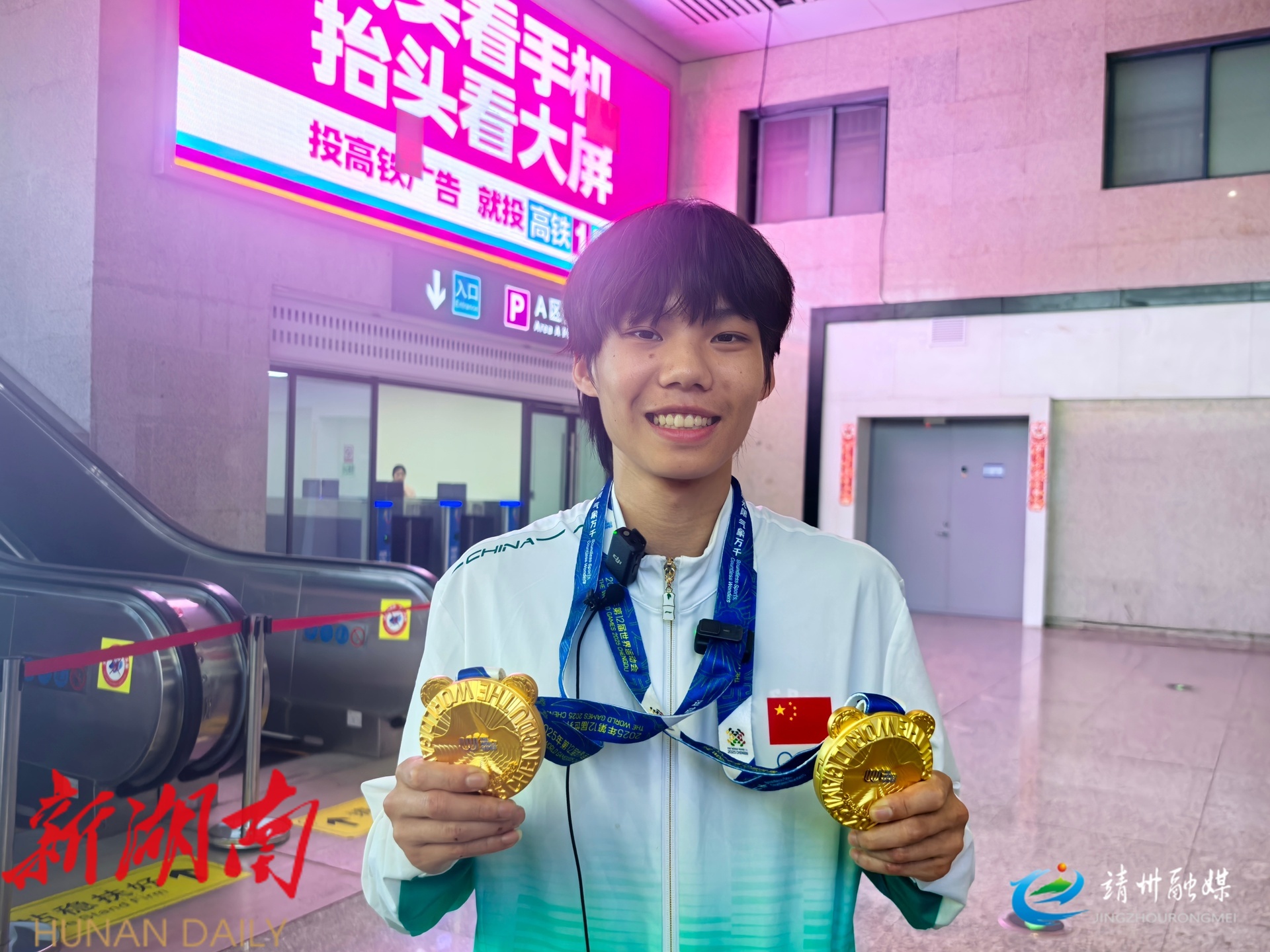 靖州籍世运会“双金”冠军,储守宏载誉归乡(周悦伊 摄)