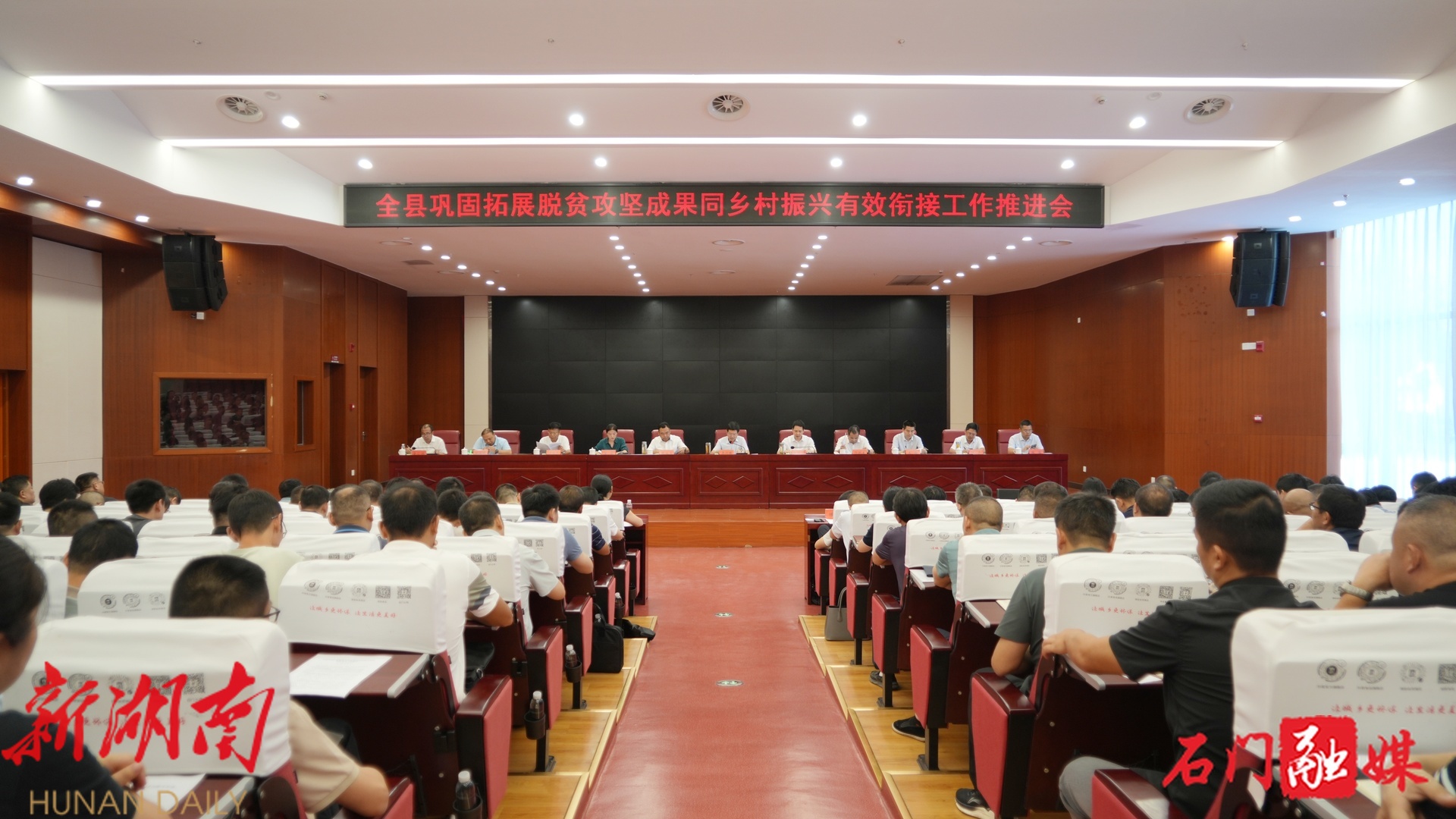 新石门客户端8月18日讯(记者 郑凯洲 王章建)8月18日,县委书记吴兴国主持召开全县巩固拓展脱贫攻坚成果同乡村振兴有效衔接工作推进会,强调要深入贯彻习近平总书记关于“三农”工作的重要论述和上级有关会议精神,切实做好深化、内化、转化文章,推动有效衔接工作取得更大成效。