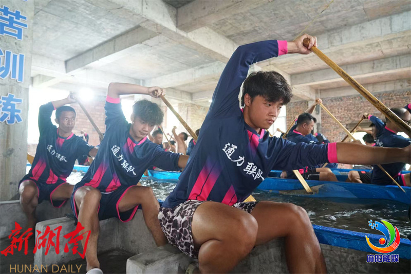 麻阳融媒8月15日讯(记者 郑金丹 欧阳 ) 距离2025“龙腾潇湘”中国传统龙舟赛(麻阳站)开赛还有十几天,通力龙舟队的训练现场早已是一片热火朝天的景象。教练全神贯注地指导队员们调整每个动作细节,从划桨角度、发力技巧到团队配合节奏,整个训练场回荡着整齐的呼号声与划桨摆动的声响。这支初生的龙舟队正奋力挥桨,为即将到来的龙舟赛,默默书写着属于新手的倔强成长史。