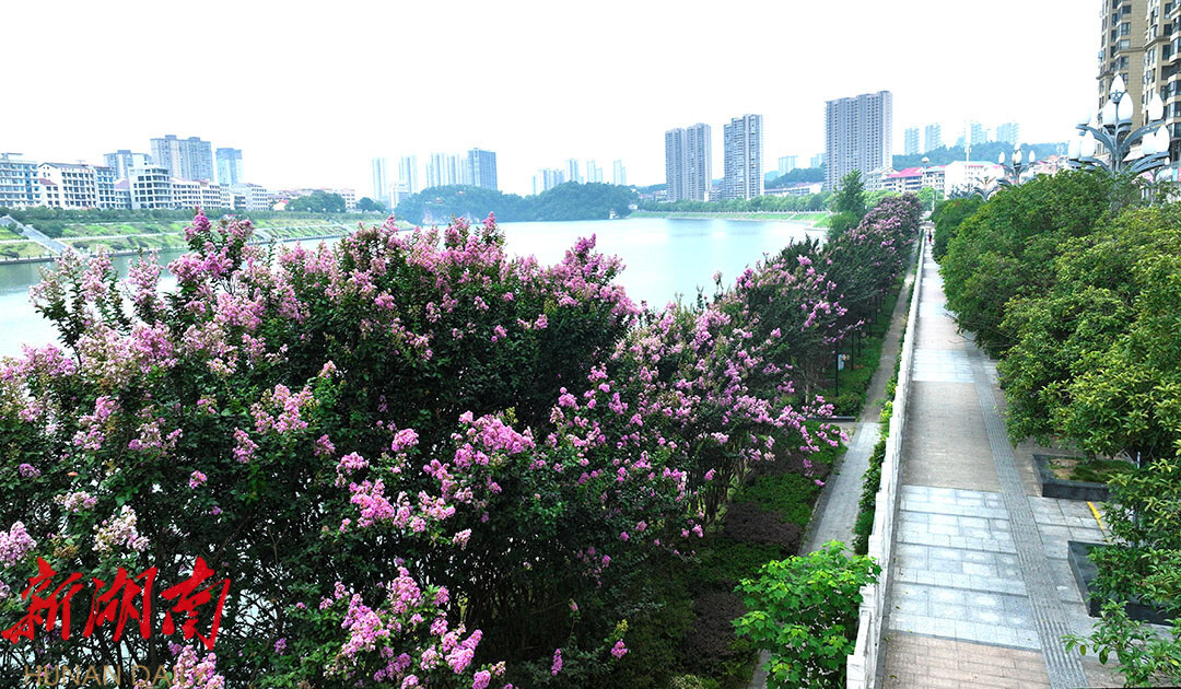 近年来,新邵县持续推进沿江生态景观建设,在资江右岸打造了一排花色丰富、花期长久的紫薇花带。每年夏秋紫薇花盛开之际,那泼泼洒洒的绚烂,成了江畔一道最动人的靓丽风景。