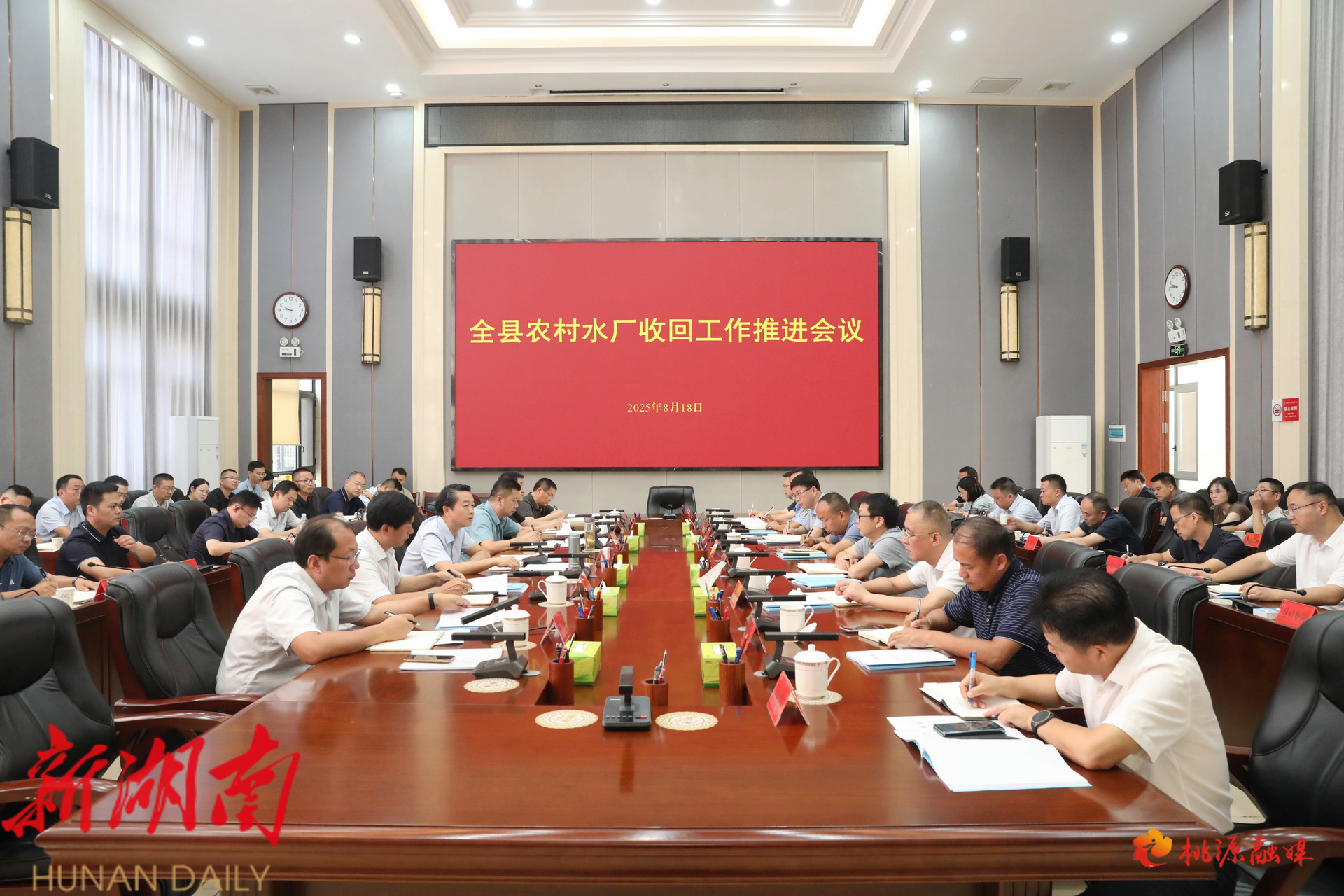 桃源融媒8月19日讯(记者:张铭齐 彭伟桐 何阳 ) 8月18日上午,桃源县召开全县农村水厂收回工作推进会,市委常委、县委书记黄伟雄出席并讲话,强调进一步统一思想认识,强化使命担当,压茬推进、集中攻坚,用心用情、再接再厉把城乡供水一体化这件民生项目、民心工程推进好、落实好。