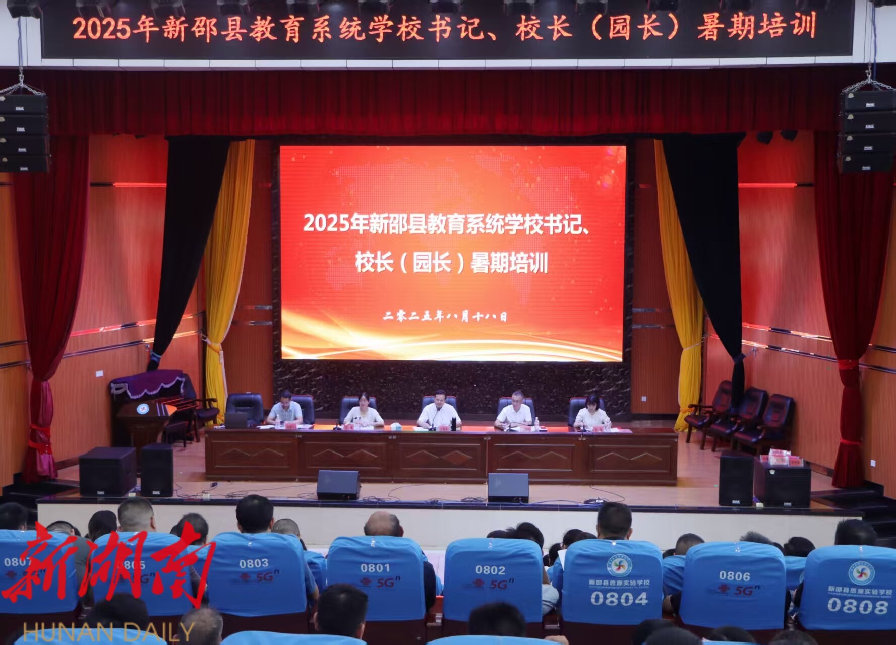 新新邵客户端8月18日讯(记者 彭欢 刘丈国 通讯员 刘纪新)8月18日,2025年新邵县教育系统学校书记、校长(园长)暑期培训正式开班,228名教育系统骨干力量齐聚一堂,开启为期4天的“充电”之旅。县委副书记、统战部部长、县委教育工委书记王振波,县委常委、县纪委书记、县监委主任黄安石出席。
