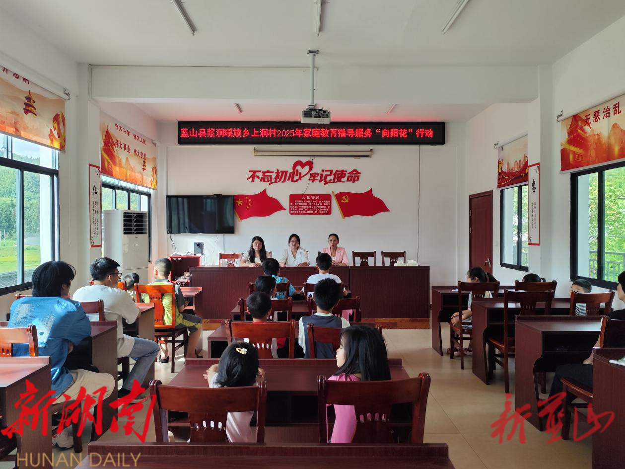 新蓝山客户端8月19日讯 (通讯员 唐怡歆)8月18日下午,蓝山县妇联与浆洞瑶族乡共同在上洞村组织开展2025年暑期关爱宣讲进基层暨家庭教育指导服务“向阳花”行动,为当地40余名家长及儿童送去了一场集思想引领、家教指导、安全守护于一体的关爱盛宴。