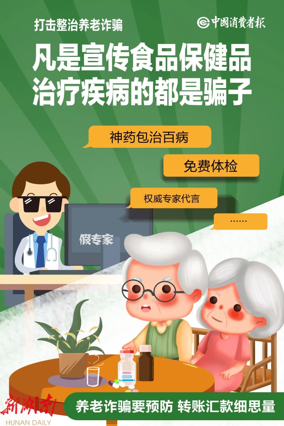 老年人别信包治百病,生病要去正规医院就诊;