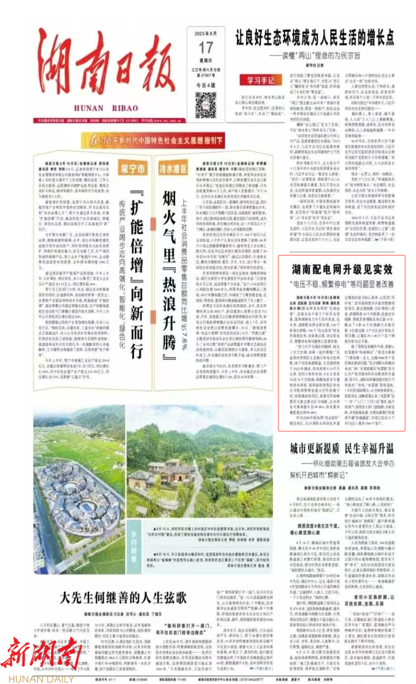 除了看得见的硬件升级,更暖心的是服务“快速响应”。“真是太感谢了!要是晚一会儿,全镇5000多户居民喝水都成问题。”长沙浏阳永和镇自来水厂钟厂长紧紧握住“电雷锋”东方红共产党员服务队队长陈波的手道谢。前不久,浏阳永和镇因强对流天气导致水厂停电,“电雷锋”冒雨巡线,1小时找到故障点,10分钟抢修复电,恢复用水。迎峰度夏以来,“电雷锋”还“一对一”上门、“三问三送”服务,敲开低保户、独居老人家门查线路,为敬老院、学校检修电器,为需电器氧疗的患者开通“快速通道”。目前已走访11个村(社区)、服务1500户客户。