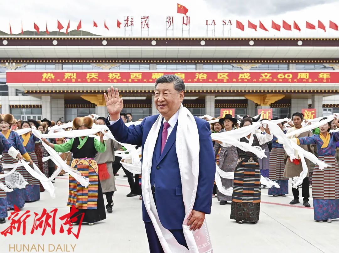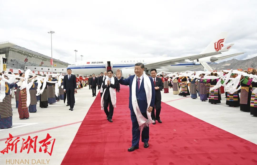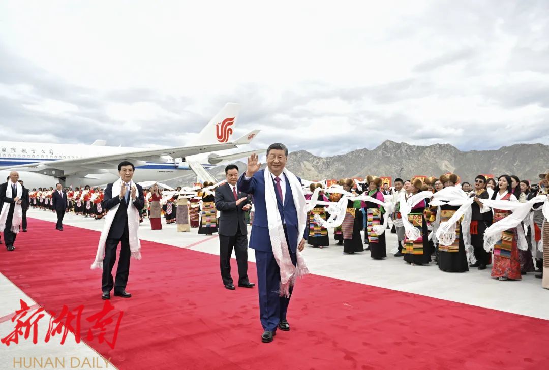 习近平率中央代表团抵达拉萨出席西藏自治区成立60周年庆祝活动