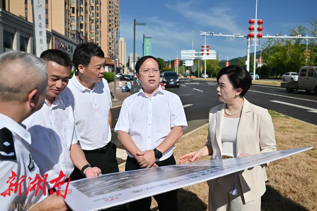 肖正波在南泥湾路与花炮大道交会处实地察看路口提质改造项目推进情况。