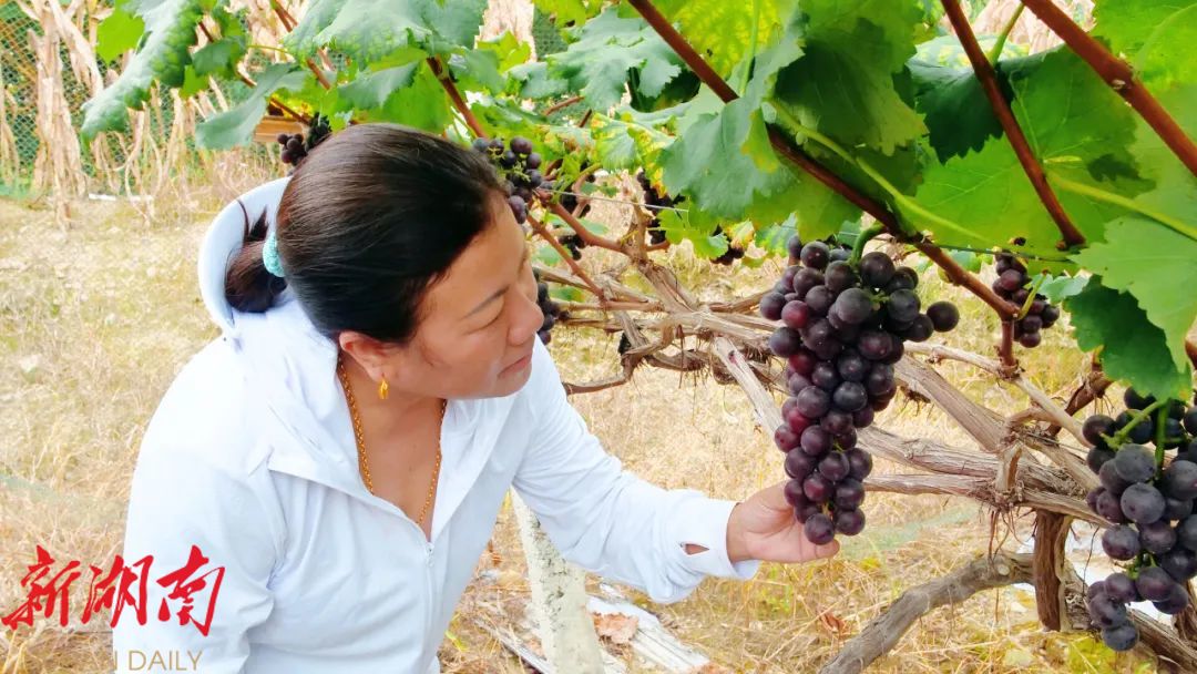 自投身葡萄种植以来,尚自英不仅将荒山坡改造成了“致富园”,还成立了桑植县八大公山镇筲箕池村勤怡合作社,持续为当地村民提供就业岗位,帮助乡亲实现“家门口就业”,累计带动就业超千人次。“我在葡萄园工作很多年了,这里离家近、活不重,照顾老人和孩子都很方便。”务工村民覃芳说道。
