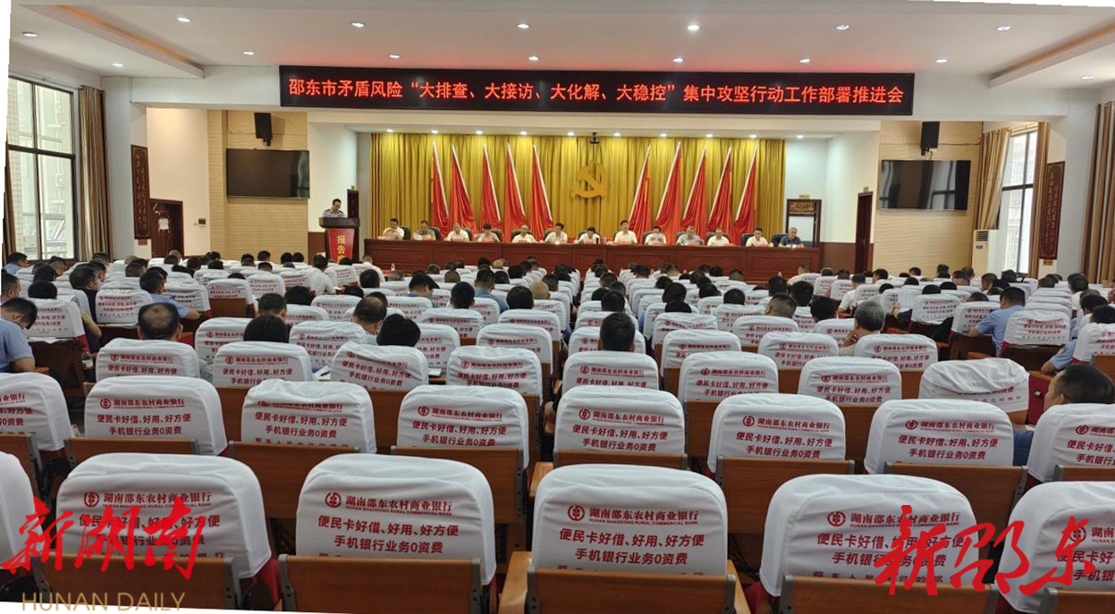 新邵东客户端8月20日讯 (记者 邓远 实习生 杨璐) 8月20日, 邵东 市召开矛盾风险“大排查、大接访、大化解、大稳控”集中攻坚行动工作部署推进会。市委书记李国军出席并讲话,市委副书记、市长付凯军主持会议。刘家豪、黄负平、罗健康、彭丁峰、罗莉、陈业华、周剑锋、李茂林、王卫兵、唐志军、谢辉伟等市领导出席。