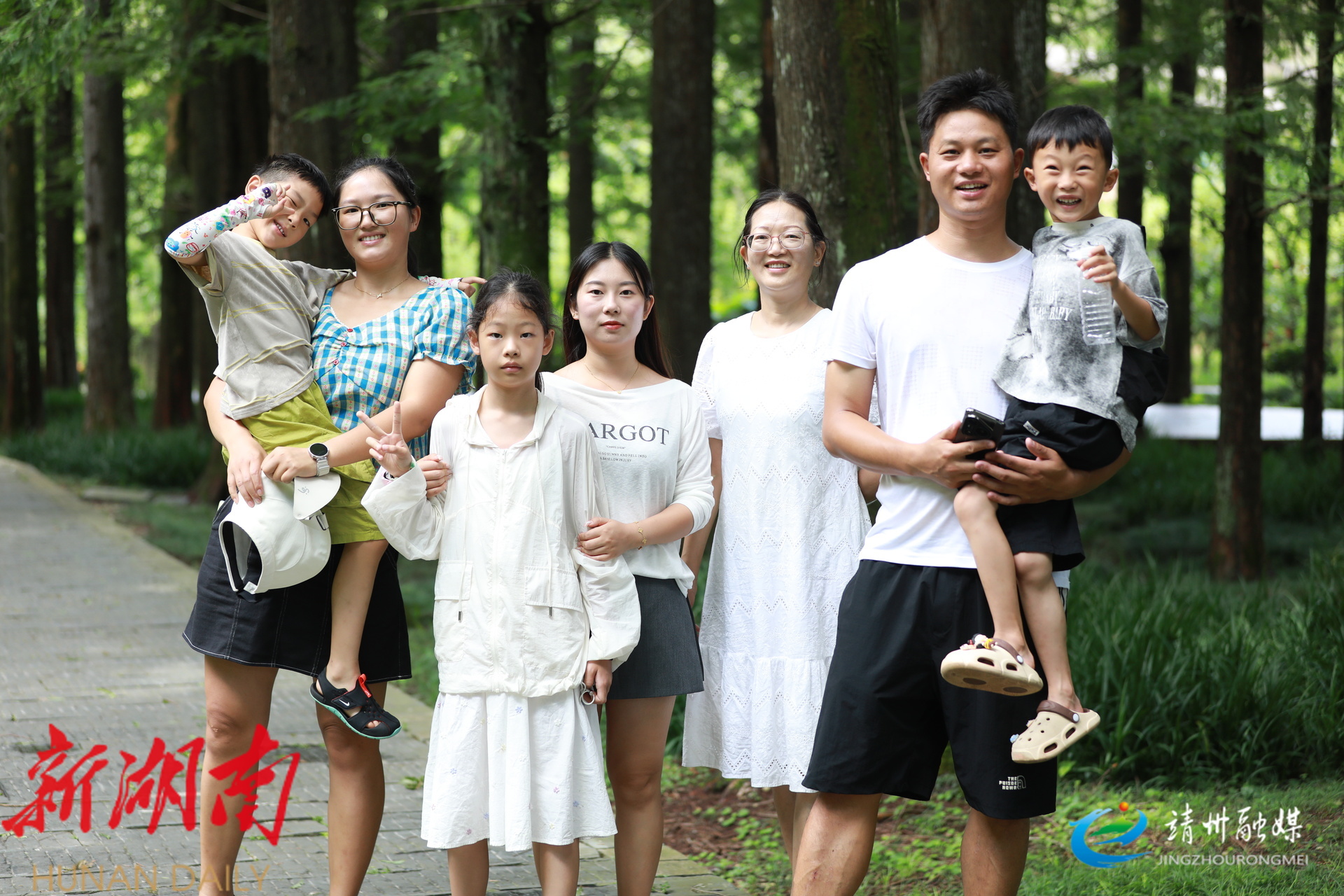 一家人在水杉林拍照打卡(钦苏芬 摄)