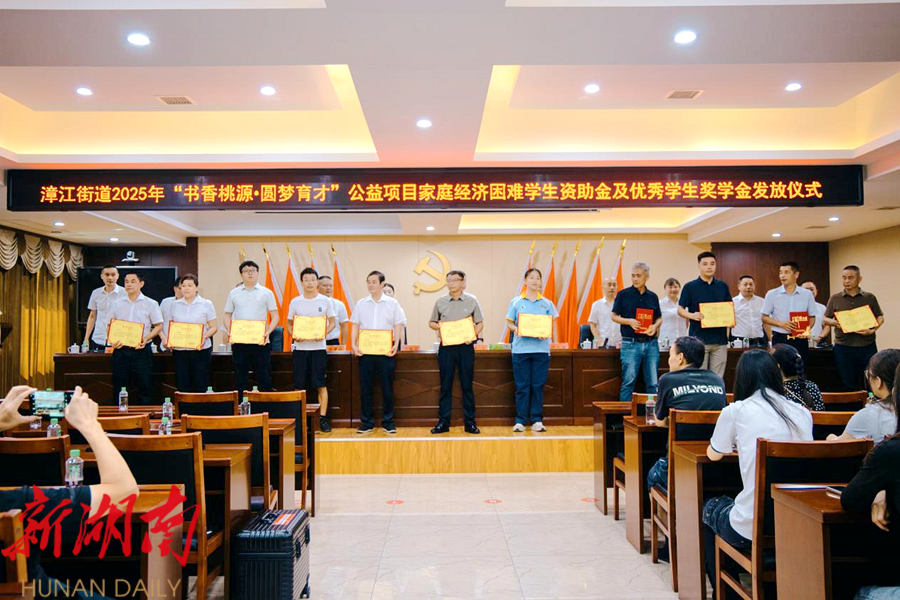 视外桃源客户端8月20日讯(通讯员: 邹汝瑶 何煦 ) 为积极响应桃源县委、桃源县政府号召,持续深化以“书香桃源”为主题的教育质量内涵提升工程。8月19日上午9点,漳江街道在机关勤政楼四楼举行2025年“书香桃源·圆梦育才”公益项目家庭经济困难学生资助金及优秀学生奖学金发放仪式。此次活动不仅是传递温情、温暖人心的善举义举,更是助力人才培养、夯实教育根基的实干实举。