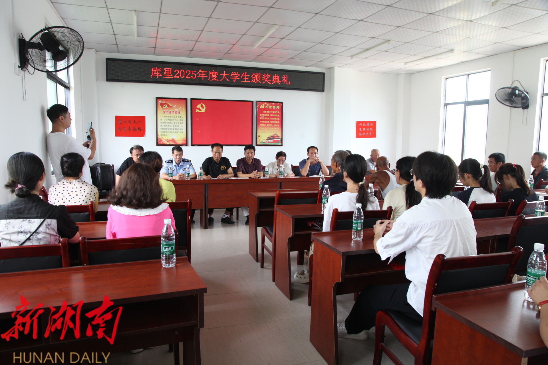 湖南日报·新湖南客户端8月19日讯(通讯员 骆丽霞 ) 8月18日,宁远县中和镇库里村为2025年高考考取本科以上的优秀学子进行嘉奖,欧阳远等19名准大学生获得库里村“阳伏生教育基金”发放的4000元、2000元不等的专项奖学金。县关工委相关负责人出席活动。
