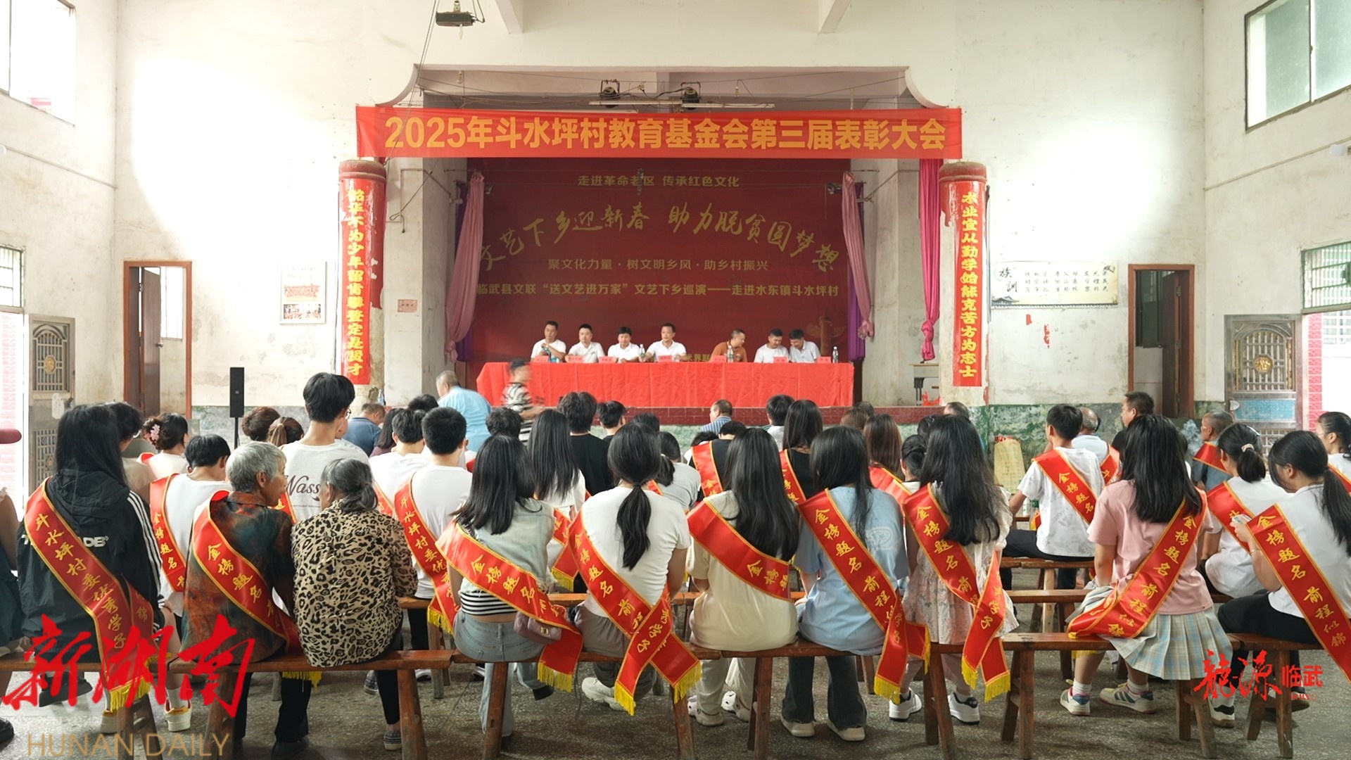 龙源临武客户端8月21日讯(记者 邓圣立 实习记者 陈丽羽)8月20日,水东镇斗水坪村举行教育基金颁奖仪式,对今年考取重点高中、本科院校、公务员、研究生及海外留学的49名优秀学子予以表彰和奖励。