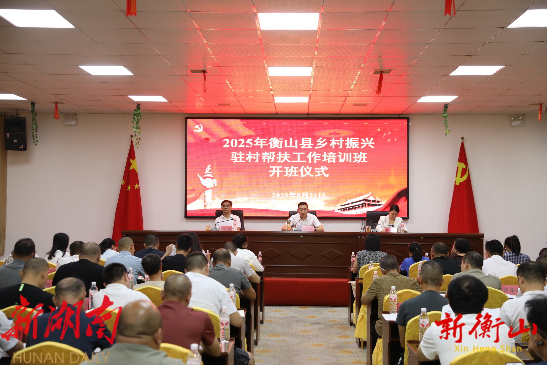 新衡山客户端8月21日讯(记者:胡程远 周继晋)8月21日上午,2025年度衡山县乡村振兴驻村帮扶工作培训班开班,县委副书记、政法委书记谢斌出席开班仪式并讲话,县委常委、组织部部长、统战部部长彭双娣主持。