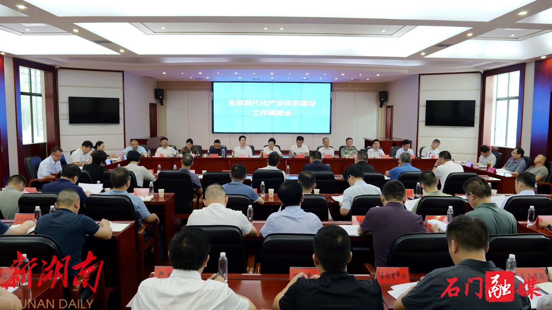 新石门客户端8月21日讯(记者 王章建 徐攀)8月21日,全县现代化产业体系建设工作调度会召开,学习传达市委县域经济高质量发展务虚会精神。县委书记吴兴国主持会议并强调,要深入学习贯彻习近平总书记关于建设现代化产业体系的重要论述,全面落实上级有关工作要求,坚定信心决心,抓准发展优势,以实干实绩推进现代化产业体系建设,赋能县域经济高质量发展。县委副书记、县长李长春出席会议并讲话。