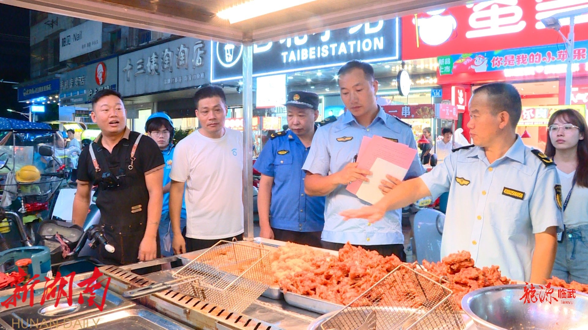 龙源临武客户端8月21日讯(记者 李亚鹏 通讯员 刘玉洁)8月19日晚,临武县食品安全委员会组织县市场监督管理局、县城市管理和综合执法局及舜峰镇、武水镇等部门乡镇联合开展城区食品摊贩专项整治行动,通过宣传食品摊贩管理政策,全面推动“亮证经营”,守护群众“舌尖上的安全”。